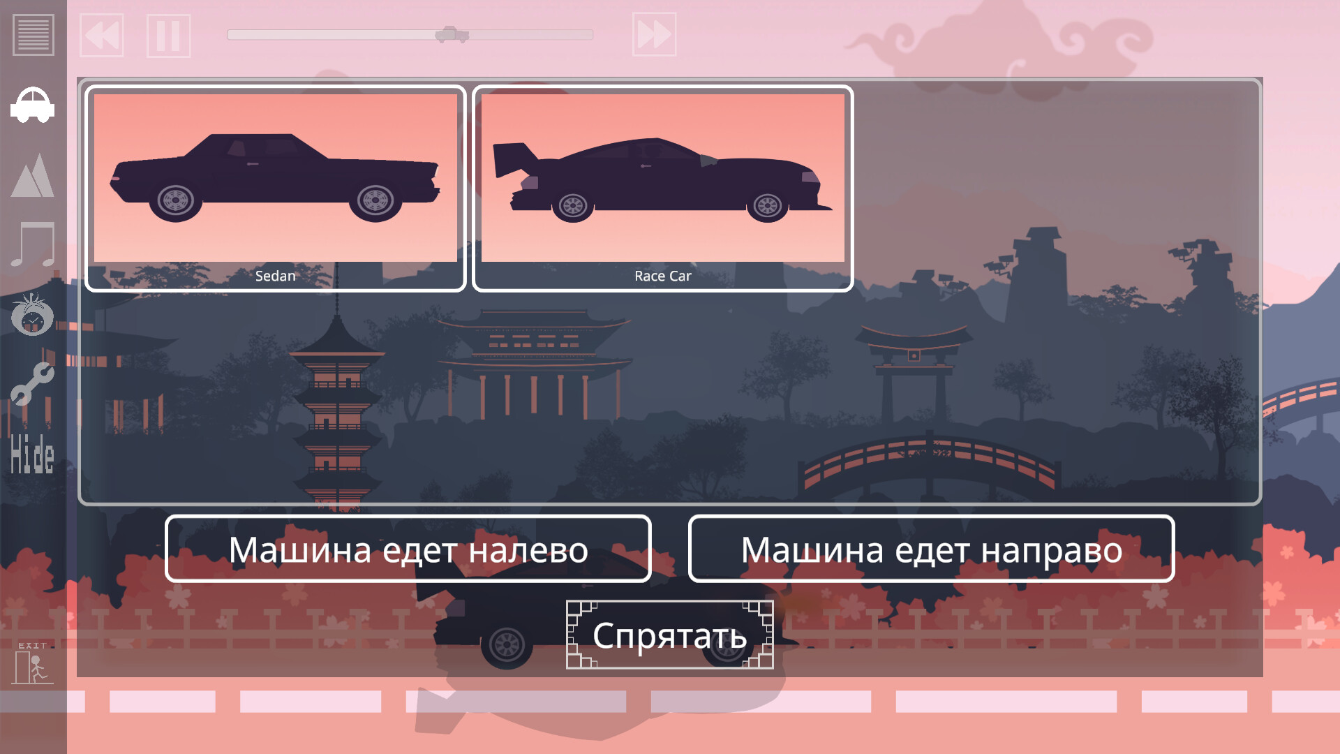 Полная версия предложит пять моделей автомобилей (в будущем будут добавлены новые) на выбор (в DEMO-версии доступны две модели). Вы также сможете управлять направлением движения автомобиля, выбирая лево или право.