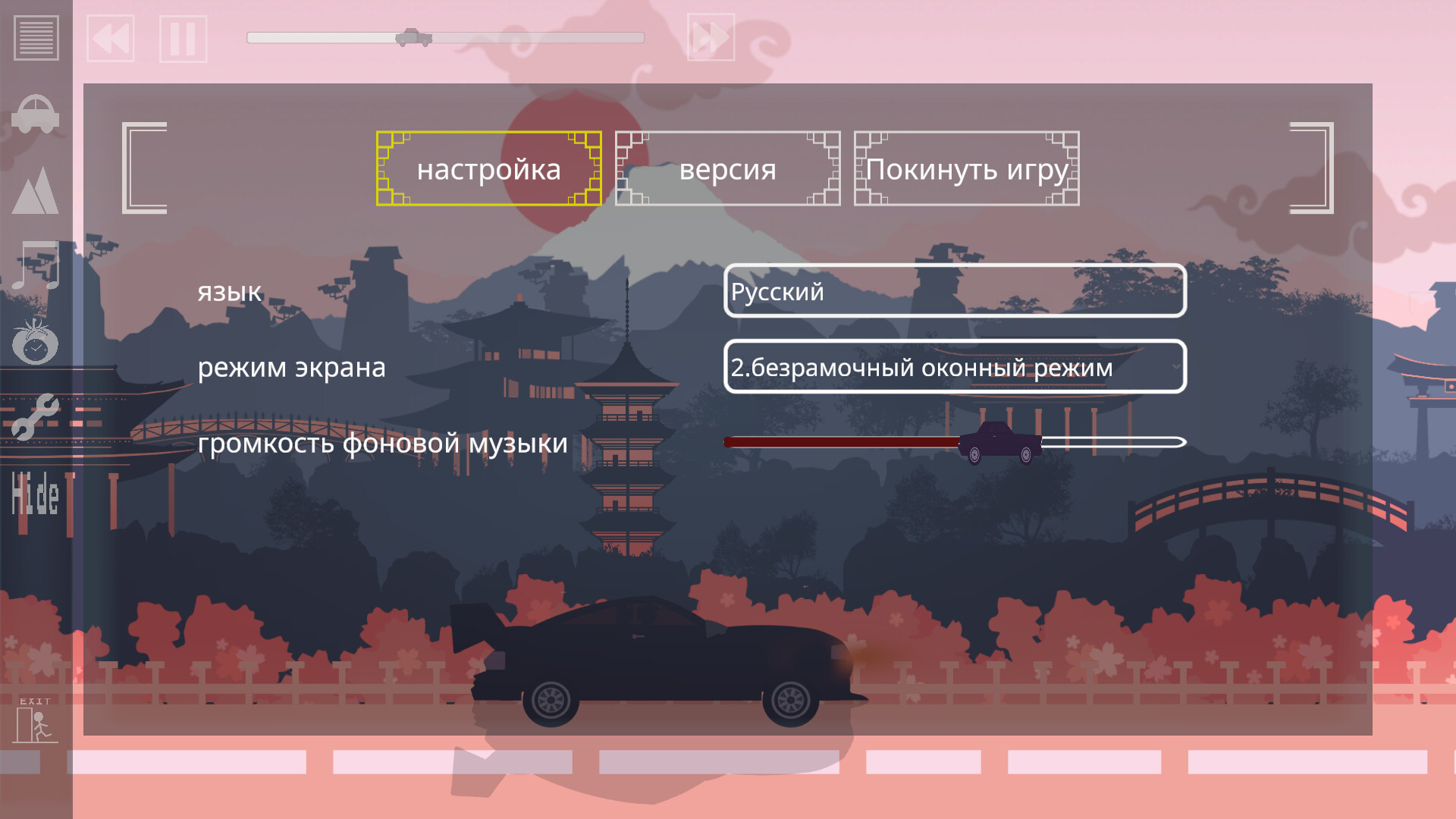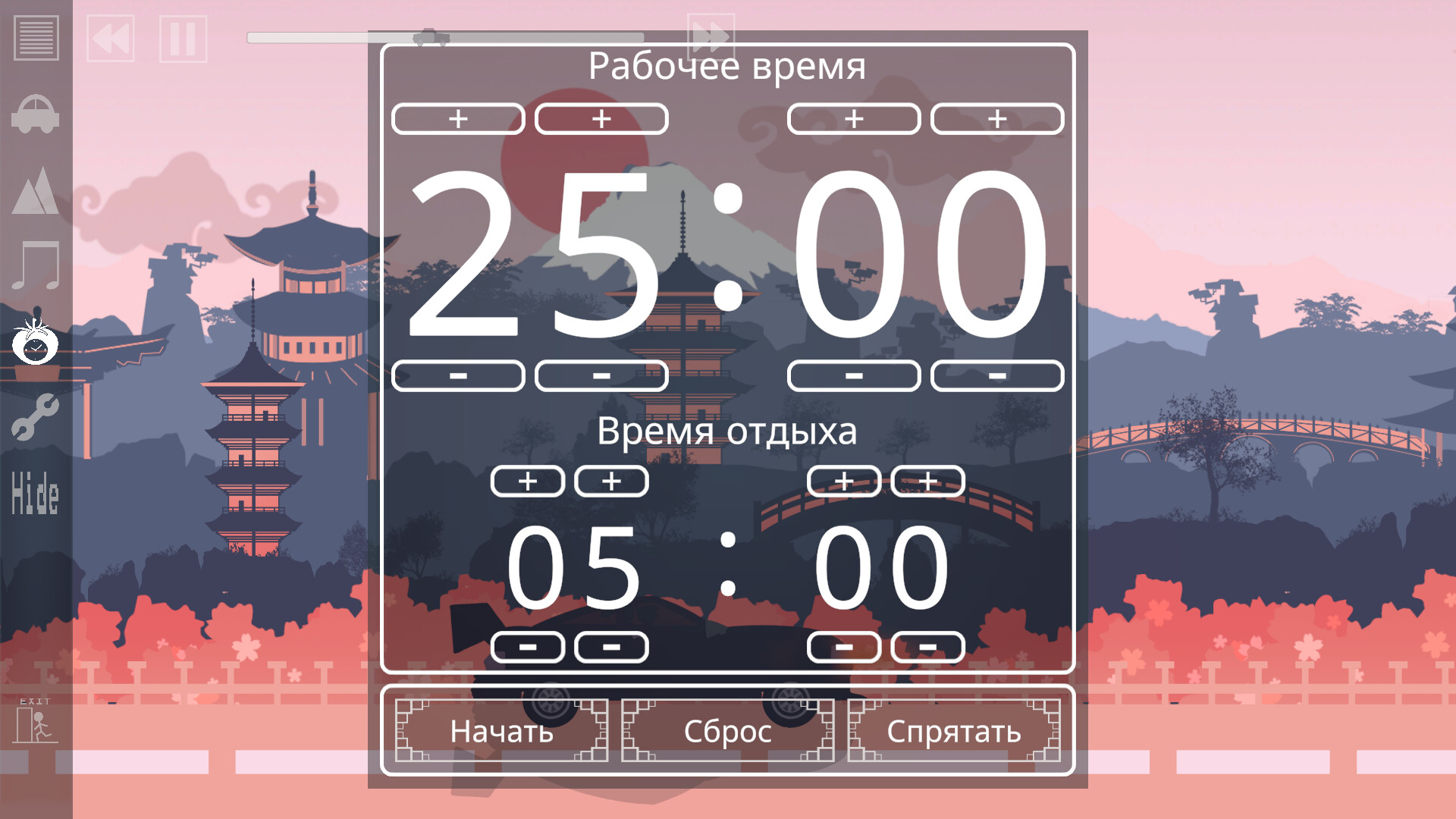 Drive And Unwind — Ваш мягкий спутник для работы и учебы Drive And Unwind — это легкий и расслабляющий инструмент с 2D-параллаксными фонами, выбором транспортных средств и погоды, пятью музыкальными жанрами и таймером Помодоро — идеально подходит для расслабления во время работы или учебы.