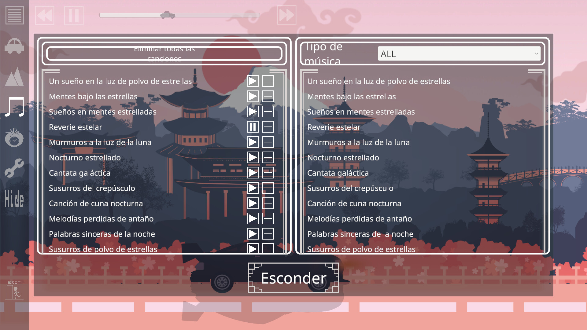 Al inicio, la versión completa incluirá 69 canciones repartidas en cinco géneros musicales (LO-FI, POP, SONG, EAST ASIAN, BOSSA NOVA). La versión DEMO ofrece 10 canciones repartidas en tres géneros (LO-FI, POP, SONG).