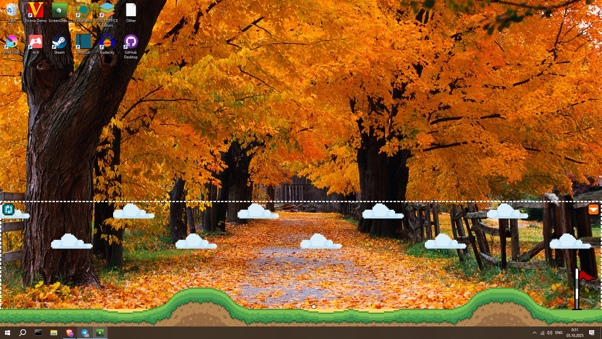 A casual 2D golf simulator in a transparent window on your screen. Get the ball in the hole with as few strokes as possible, unlock new balls, skins, and effects, and enjoy randomly generated levels!