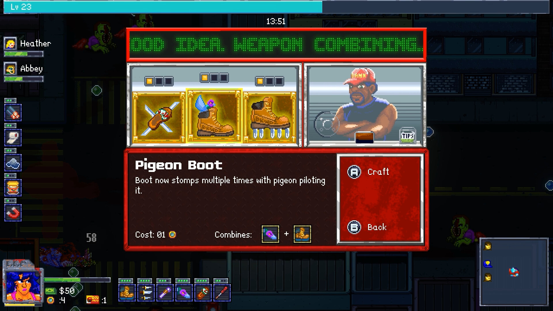 • Create wild weapon combos! Strap knives to slippers and shred hundreds of fiends or make a bazooka out of fireworks and a pipe to blow up everything in sight. Experiment to uncover fun new combos!