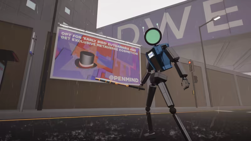 The Last Gig is an immersive first-person action stealth game that sees you facing off against a blandly murderous superintelligence, inadvertently brought into being by a Silicon Valley social media company attempting to "drive user engagement".