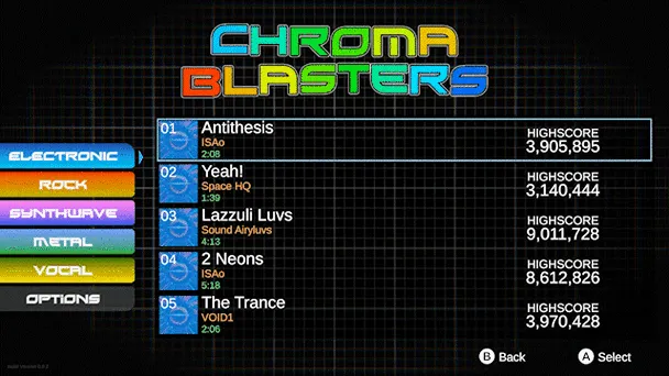 Chroma Blasters is a solo developed top-down twin-stick arcade shooter where enemy waves are shaped by music. With over 130 music tracks and a fast, reactive color-matching gameplay, every track becomes a new battlefield.