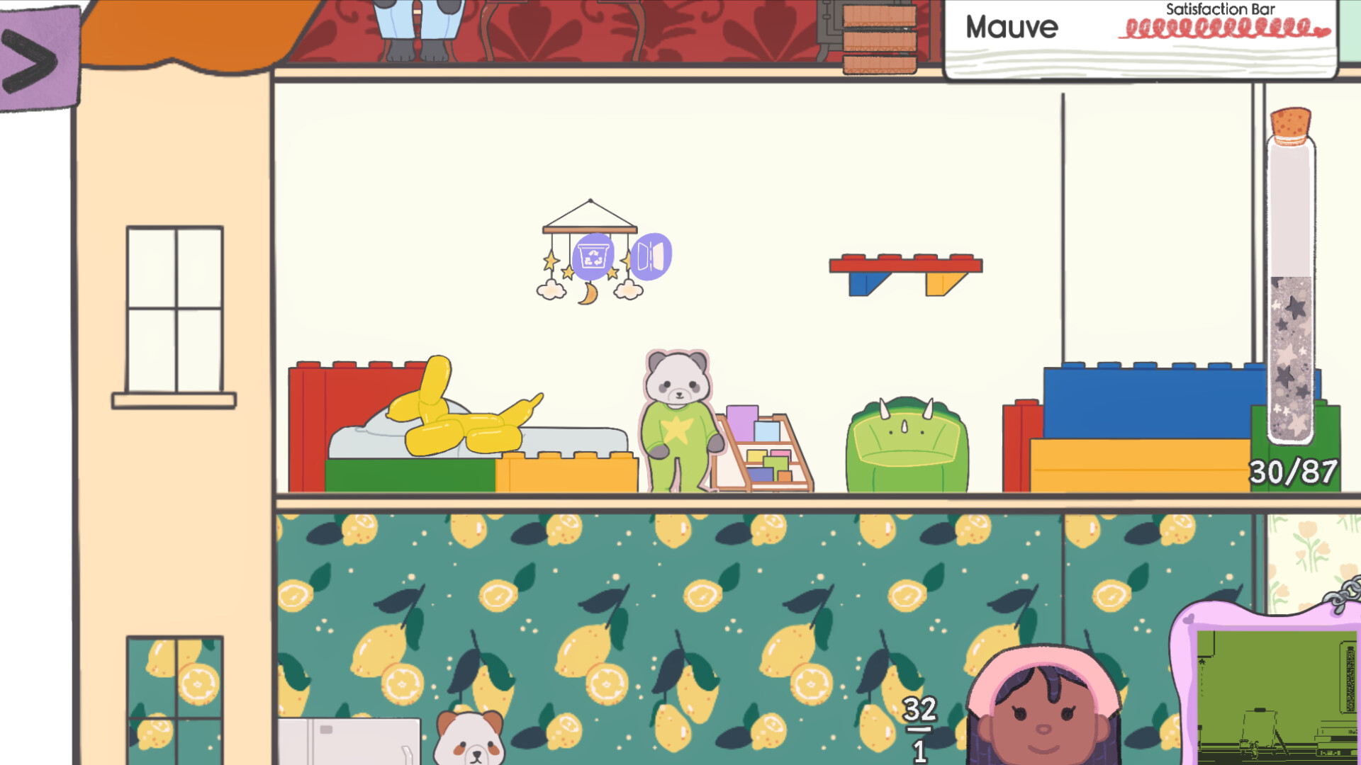 Dalam Mode Cerita, Mauve mendekorasi rumah untuk boneka kain lain yang ia temui! Berdasarkan deskripsi dan penampilan mereka, cari tahu seperti apa rumah impian mereka. Buat mereka senang, dan kamu akan mendapatkan keuntungan unik, seperti gaya rumah baru bahkan kemampuan mengundang boneka kain itu ke rumahmu!