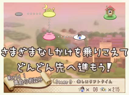 • Z/PADButton0 - 現在の魔法を使用します。魔法を持っていないときは、杖を使って敵に一撃を与えることができます。叩いた敵が魔法を持っている場合は、その敵に応じた魔法メダルをゲットすることができます。