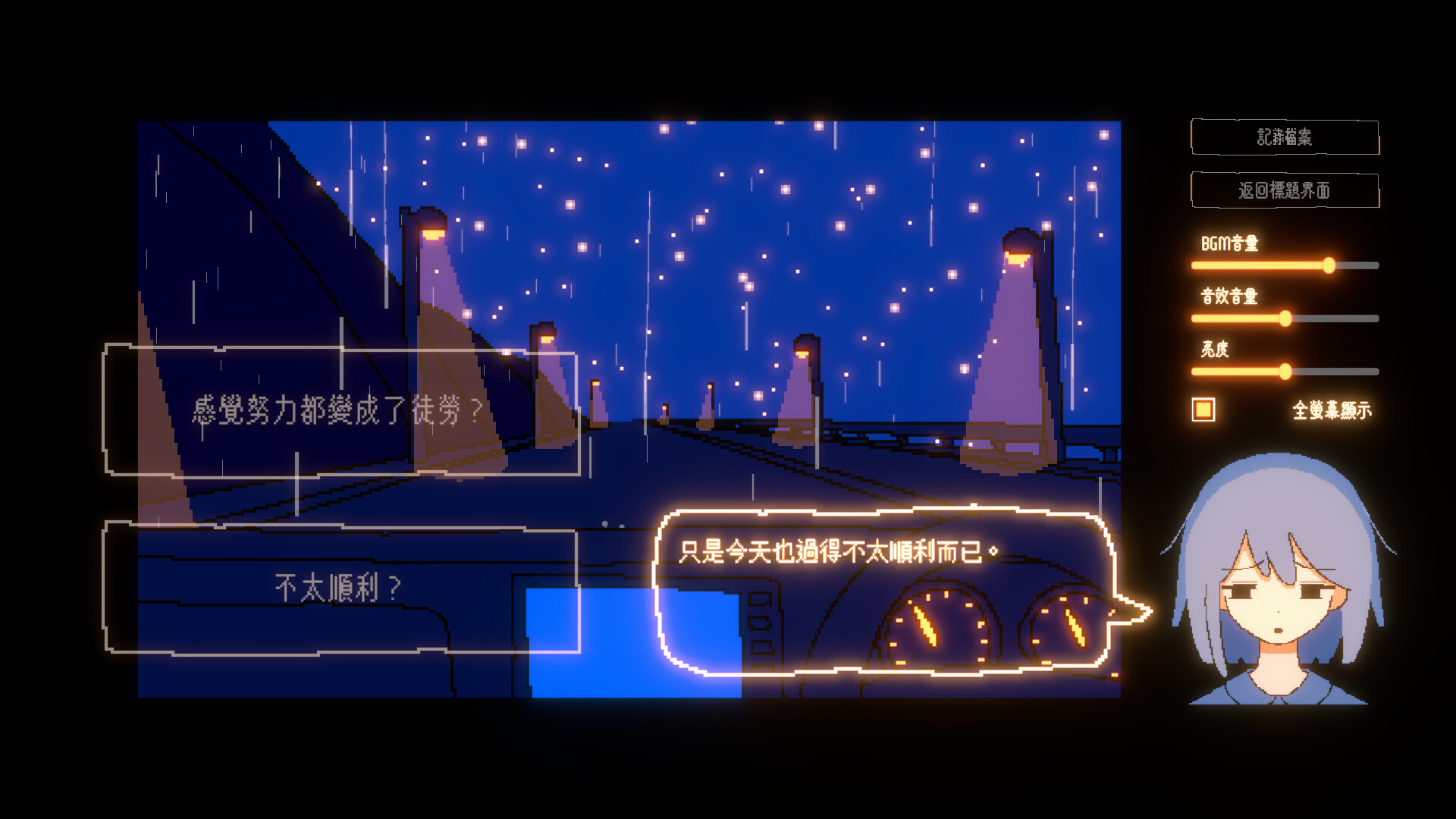 一部駕車行駛在雨夜,與憂鬱的少女進行對話的多結局短篇ADV。