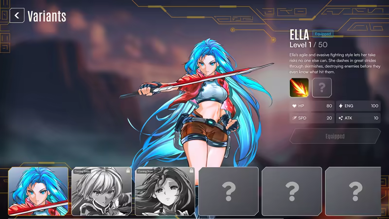Choose from a variety of characters, each with their own playstyle. Unlock new Variants as you progress through the game.