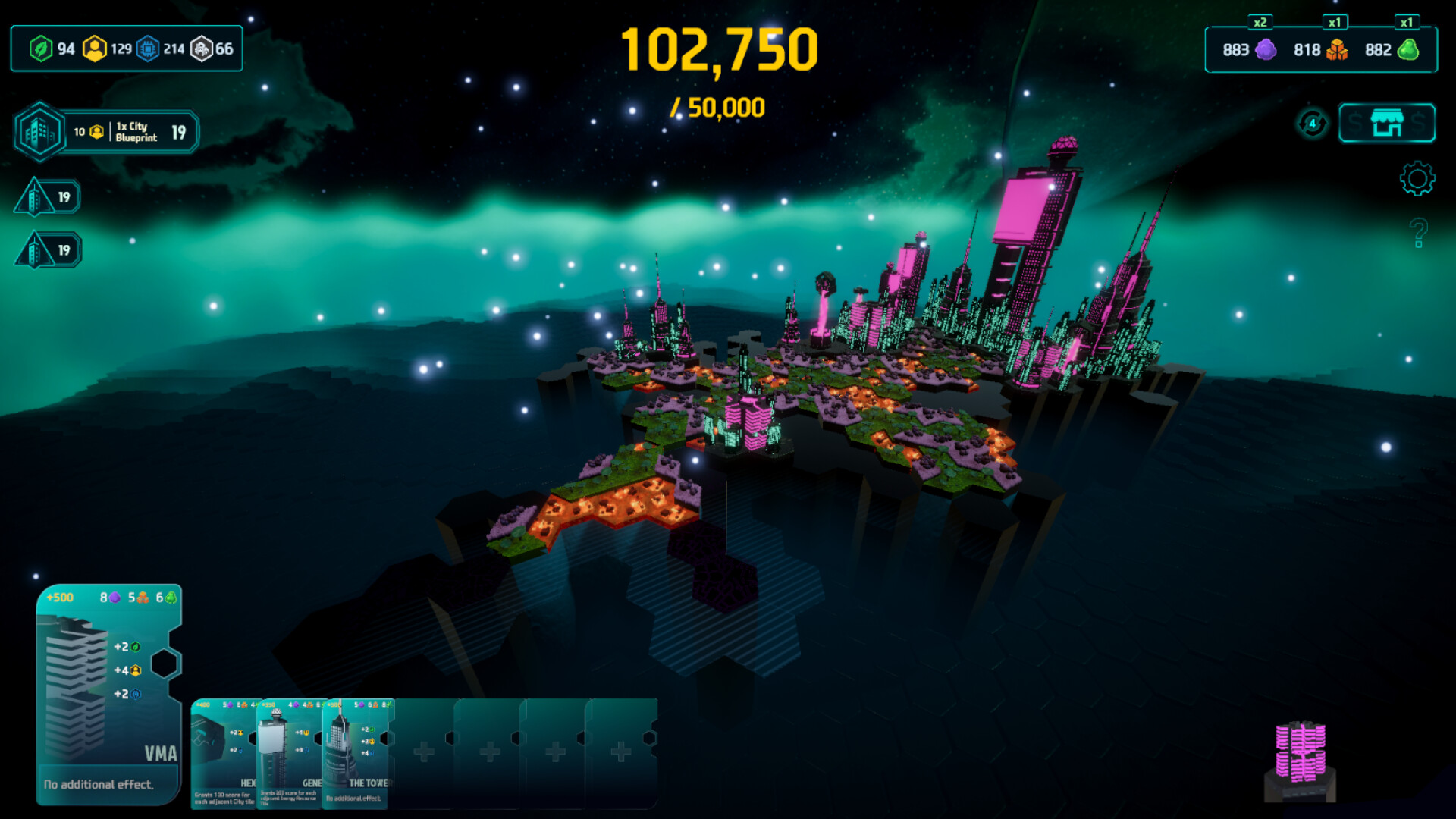 • Mix and match 3 different resource tiles to unlock and construct city-tiles