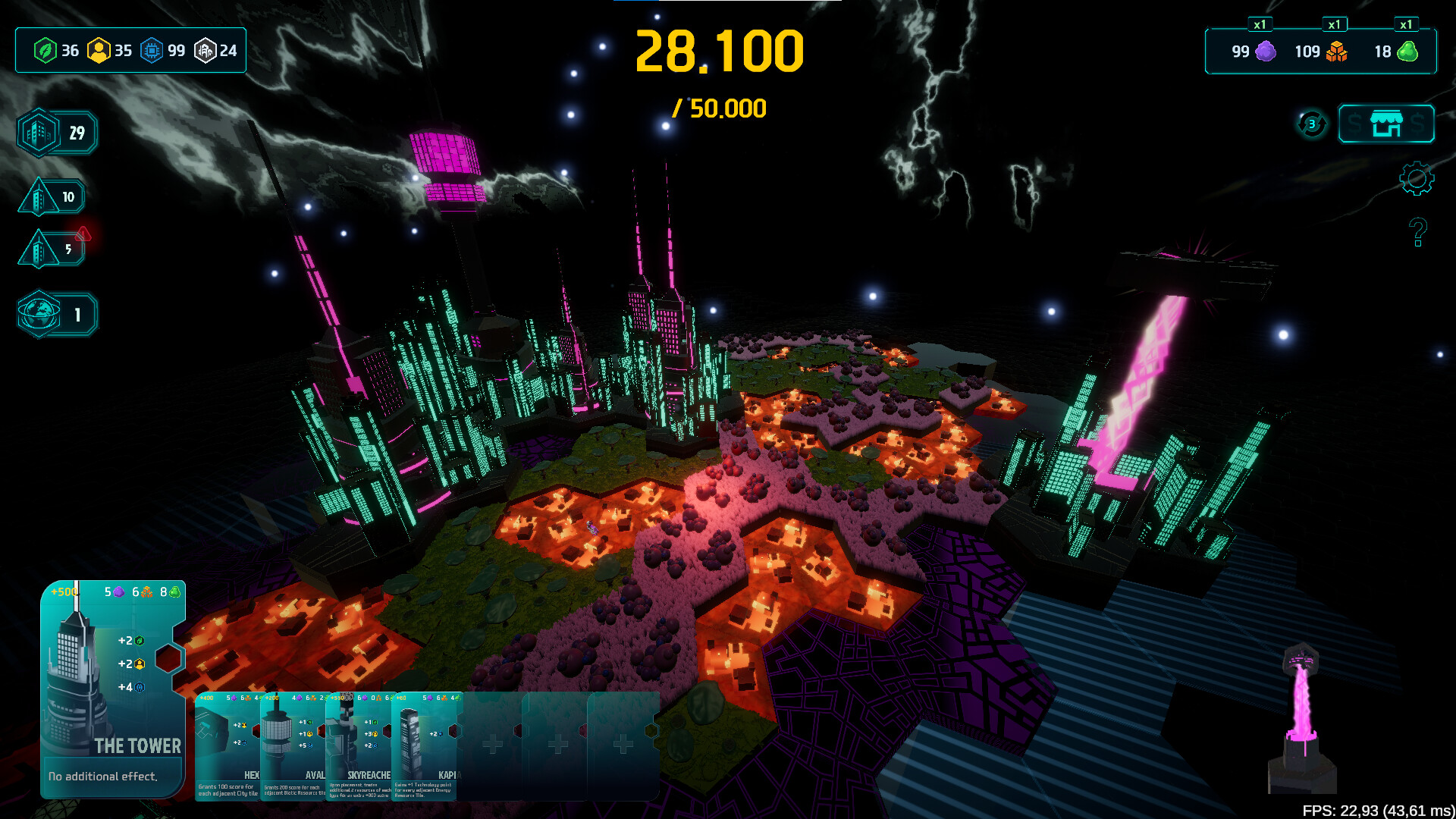 • Build up to 11 distinct city-tiles, each with adjacency bonuses and vertical upgrades