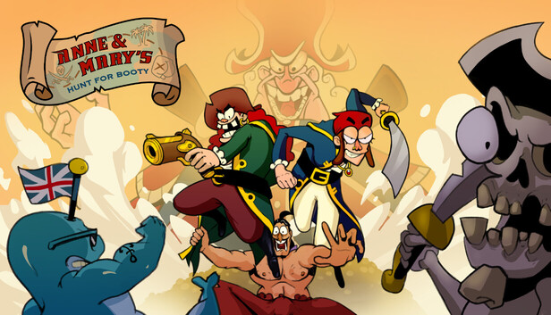 Anne and Mary's Hunt for Booty is a fast-paced 2D beat 'em up. Play as historical pirates Anne Bonny and/or Mary Read, shoot and slash through the British fleet, and save the cowardly captain from a nasty privateer! Features swashbucklin' beats, local co-op, and art stylized by '90s cartoons.