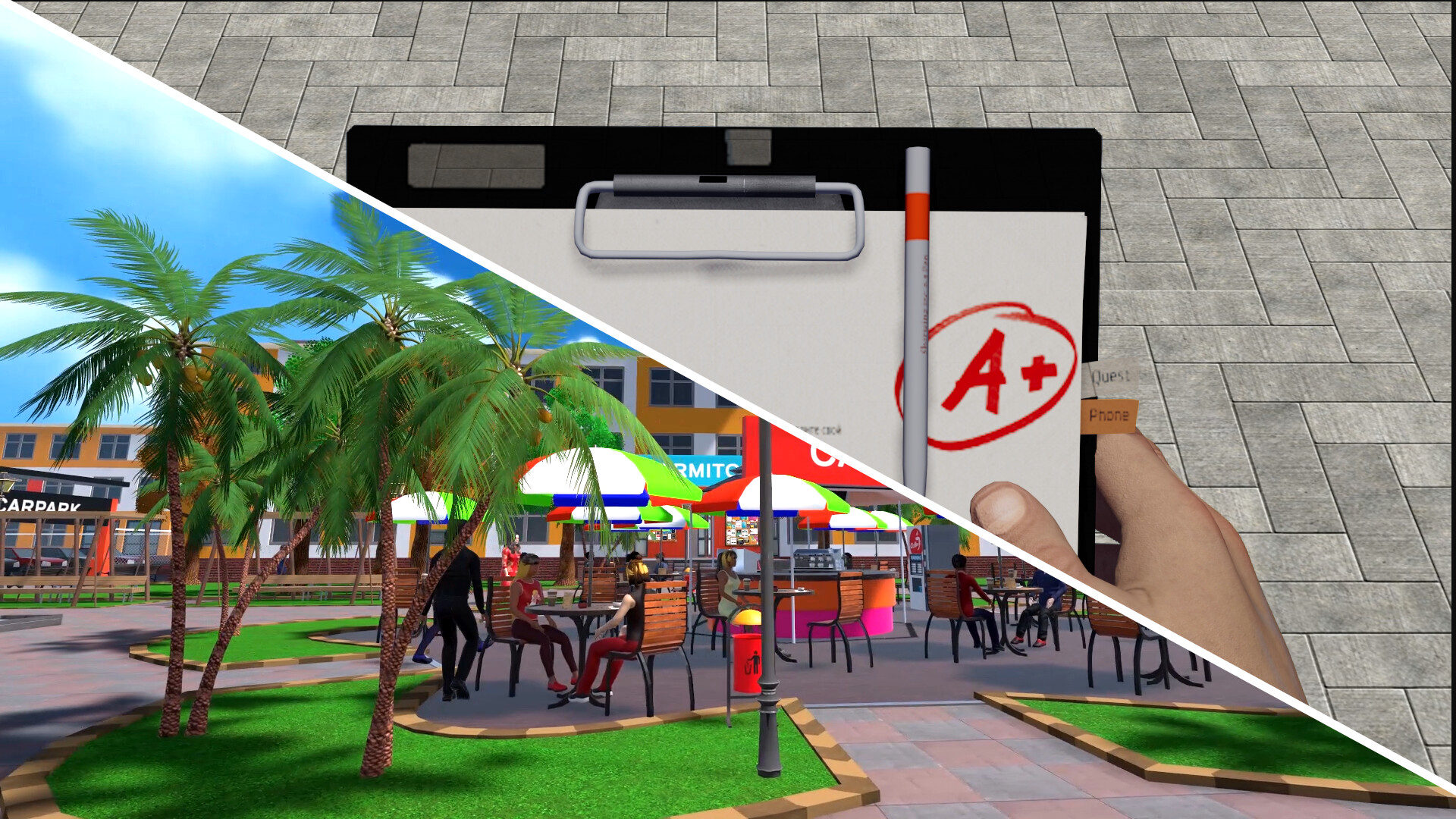 Besuche Vorlesungen, arbeite Teilzeit in der Cafeteria und gestalte dein Zimmer im Wohnheim nach deinen Vorstellungen. Klatsche in der Bibliothek, flirte auf Partys oder entspanne dich an deinem Lieblingsort auf dem Campus. Es geht nicht nur darum, ein Verbrechen zu lösen – es ist ein vollständiger Universitäts-Simulator, bei dem dein tägliches Leben genauso wichtig ist wie die Ermittlung.