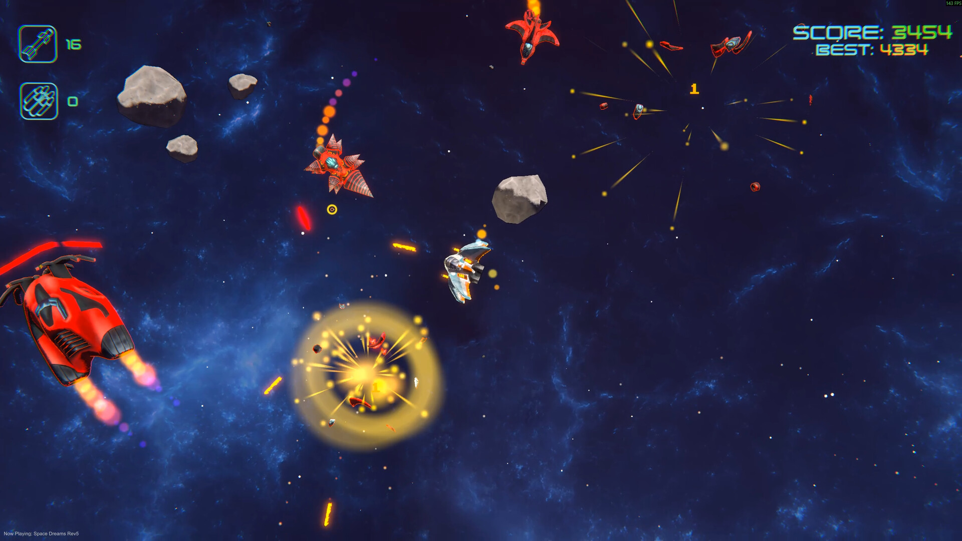 Survive the chaos of deep space in this intense top-down arcade shooter! Crush asteroids, defeat enemy ships, and fight deadly bosses with lightning-fast reflexes.