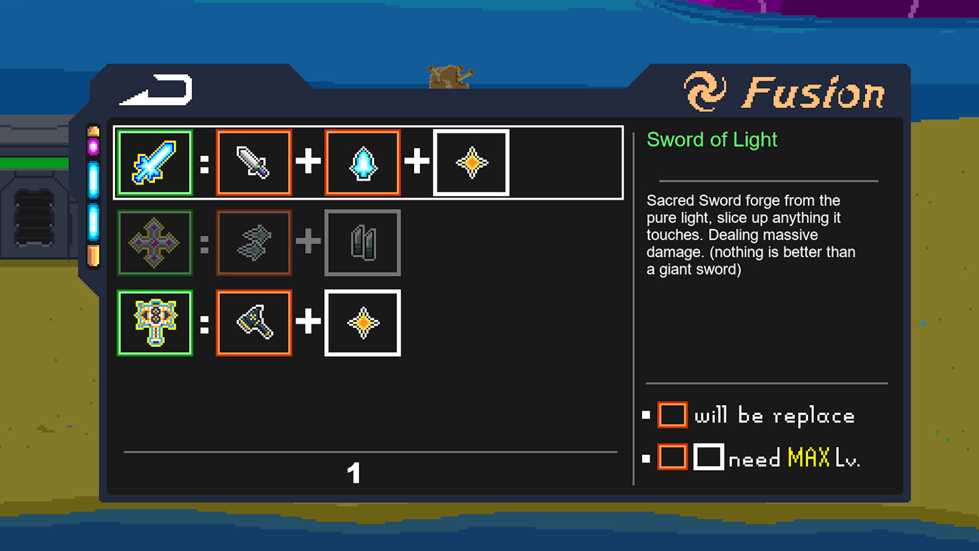 Killing an enemy will automatically gain EXP. Gain enough EXP. will level up. You can pick 1 upgrade out of 4 options when you level up. If you have specific upgrades, you can fuse them into a more powerful upgrade in the level-up screen.
