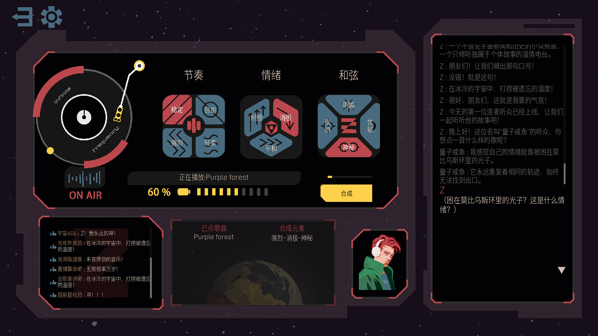 • 不同的歌曲风格会影响听众和主角的故事结局(多样的结局选择)。