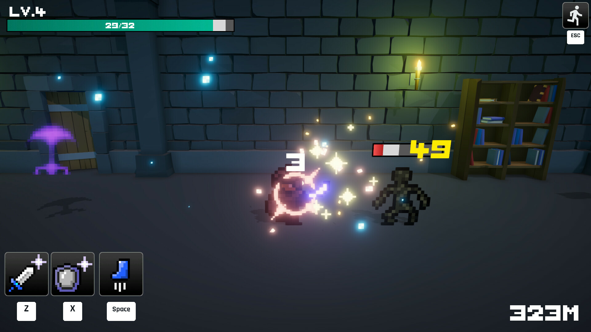 Every 100 meters, a powerful boss awaits. Defeating them will reward you with permanent artifacts that you can keep even after death!
