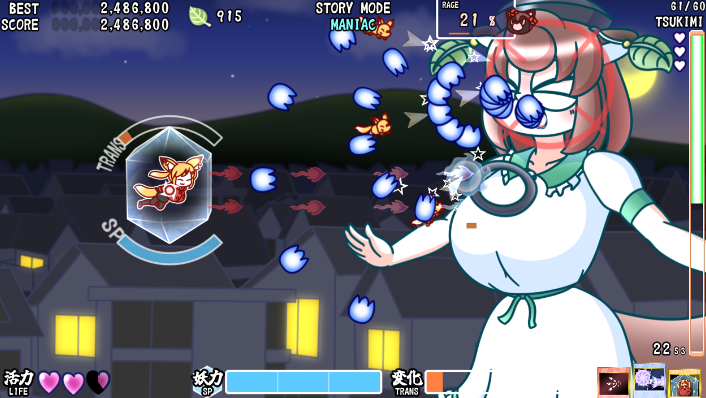 妖術や変化を駆使して、激しい弾幕を切り抜けろ!