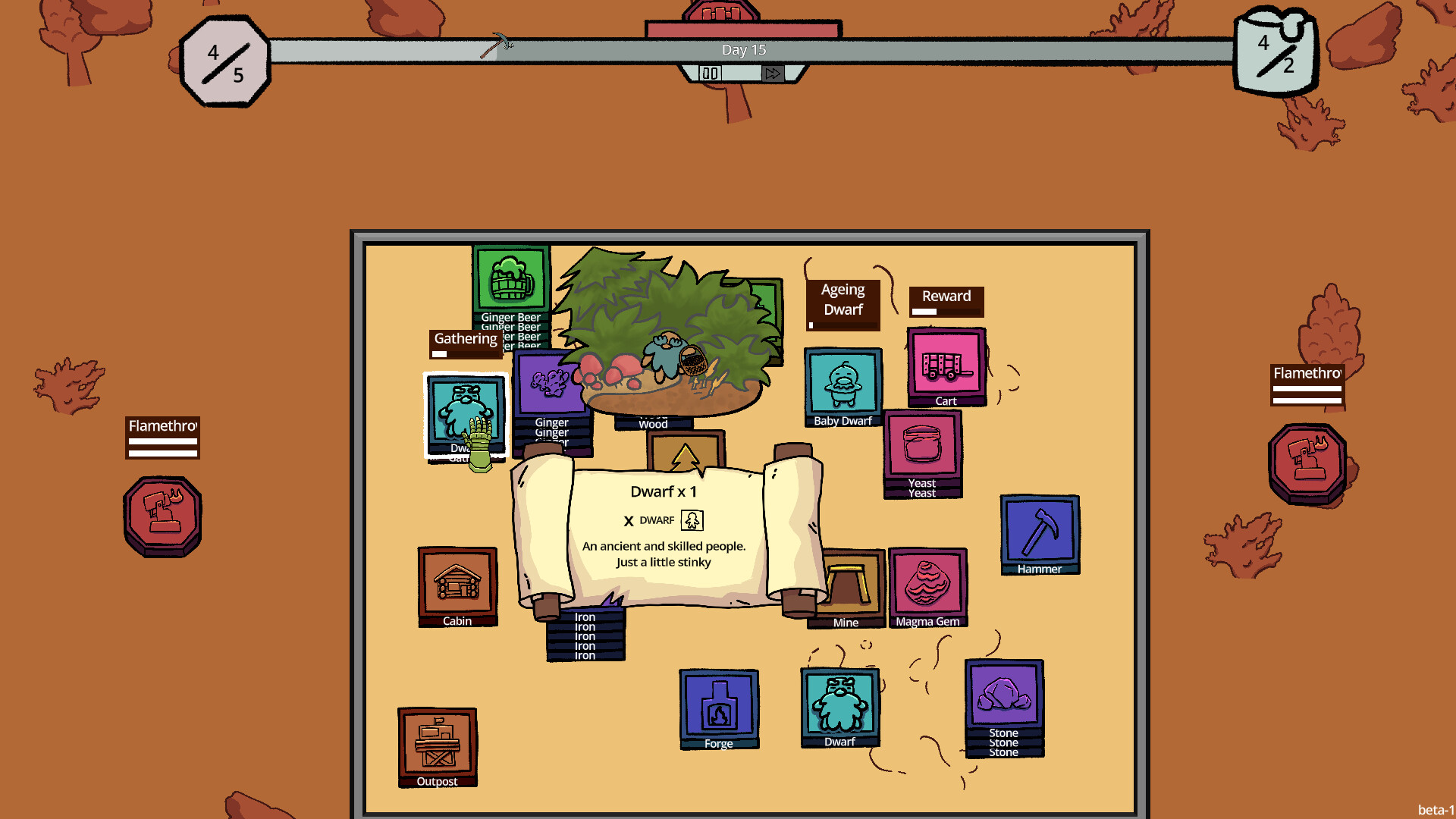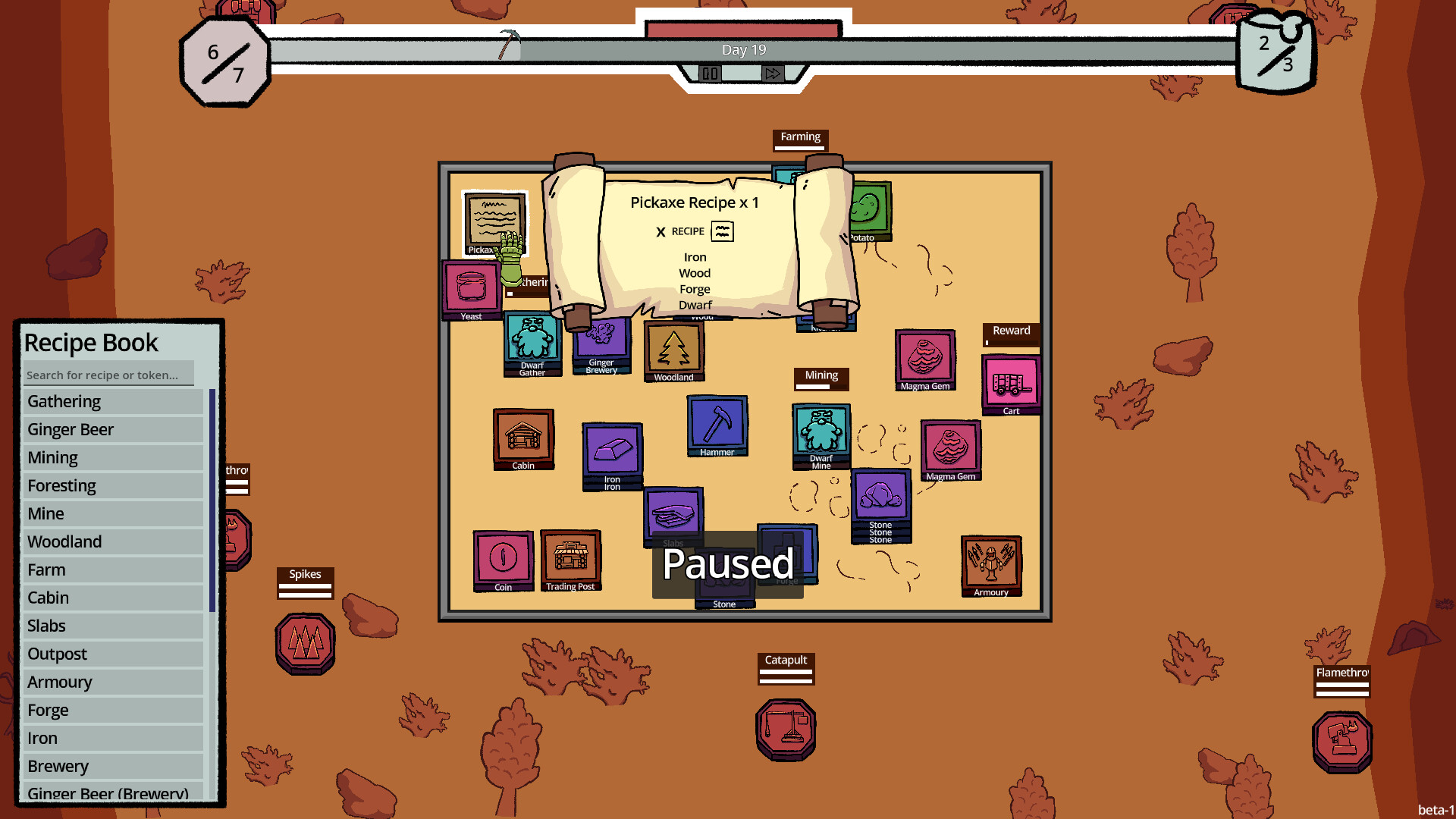 You can stack tokens to gather resources, create tools and build towers. You need to keep your dwarves fed with ginger beer, discover new crafting recipes, and fend off the animals attacking at night!