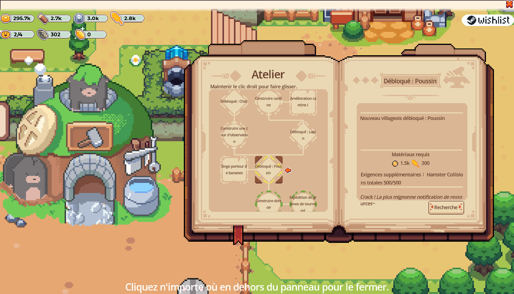 Arrivée des habitants : plus vous avez de bâtiments, plus les animaux se rassemblent et animent le village !