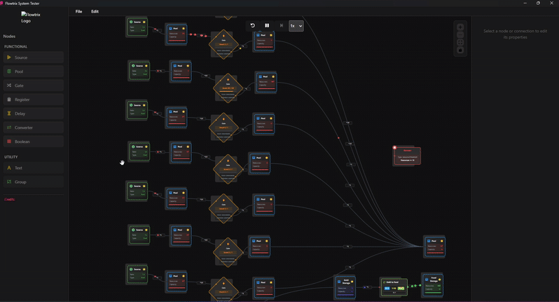 “All core features and workflows have been fully implemented. The system now includes a comprehensive set of fundamental nodes such as Source, Pool, Gate, Register, Delay, Converter, Drain, Condition, and Boolean nodes.