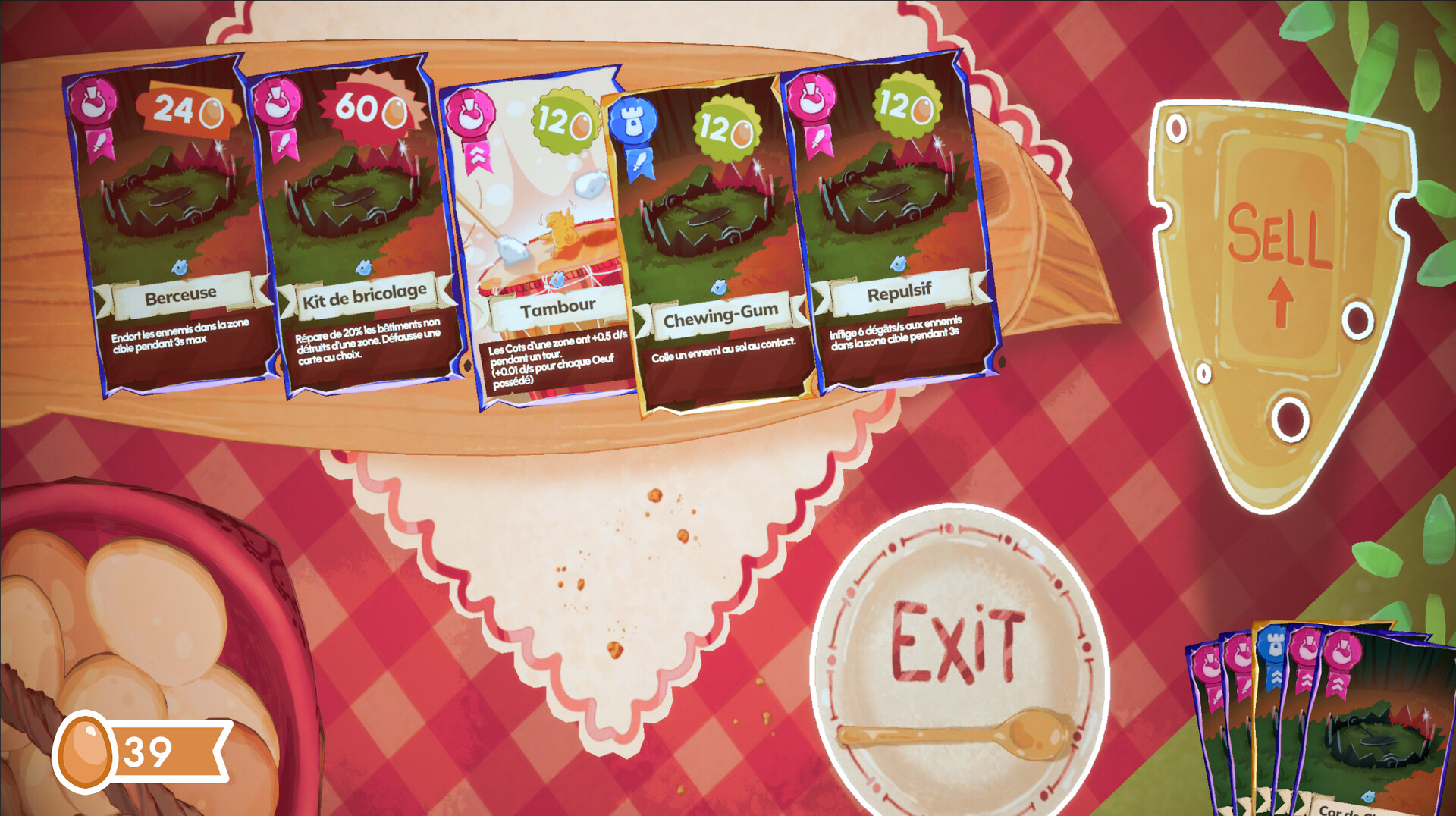 Each day, earn some new cards to upgrade and defend your coop: Your goal is to survive for as many nights as possible against waves of wild predators invading your land. To succeed, think up strategies using your Cots, eggs, buildings, traps, obstacles, and spells to repel the nighttime assaults!