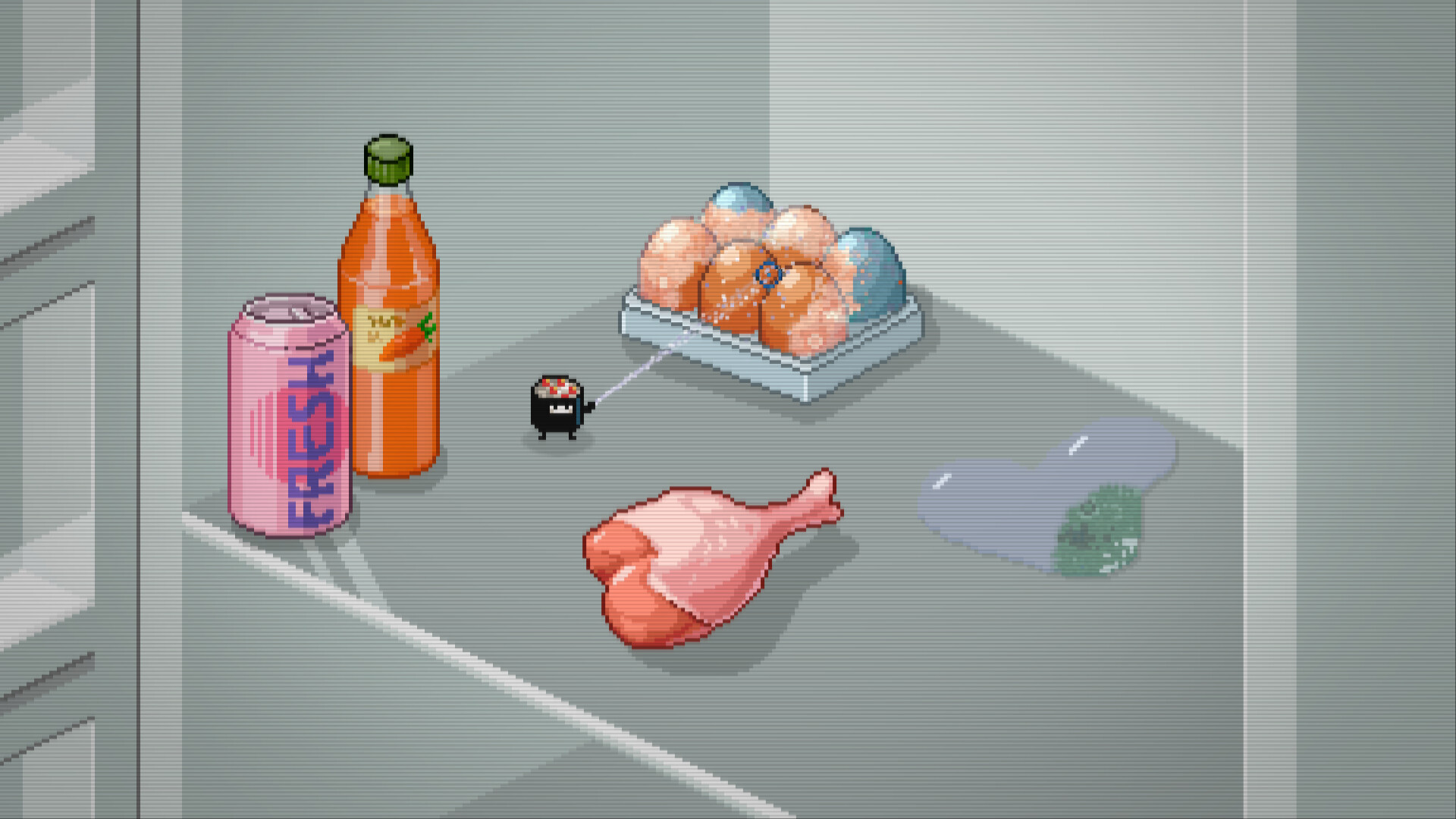 In this meditative arcade game, you control a guy with pressure stream to clean off mold that has taken over food, shelves, drawers and even the freezer.