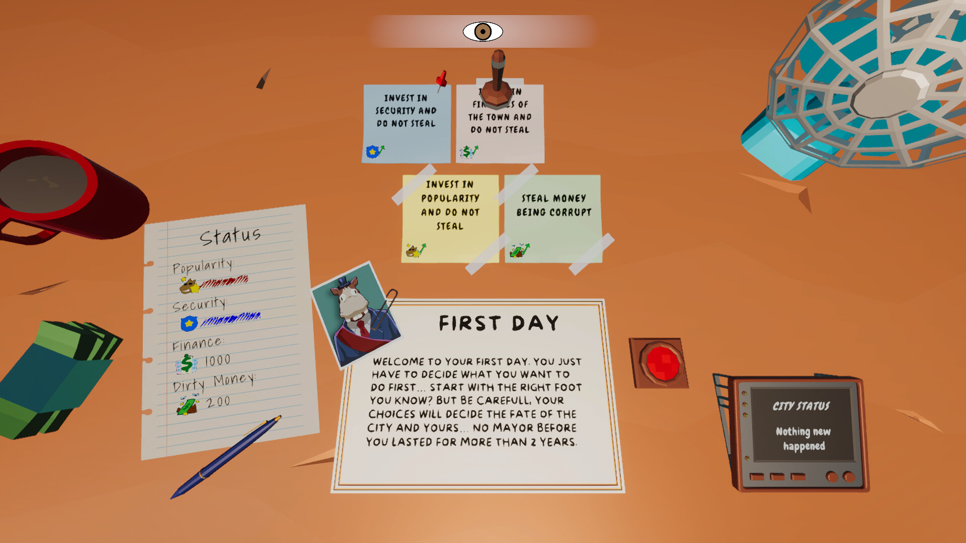 Welcome to Horsestown, a chaotic city. Survive your 4 year term while dealing with ridiculous and impossible situations.