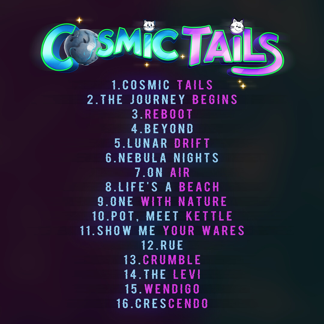 Whether you're flying out in space, using the litter box, or collecting fish bones at your day job -- the Cosmic Tails soundtrack has you covered!