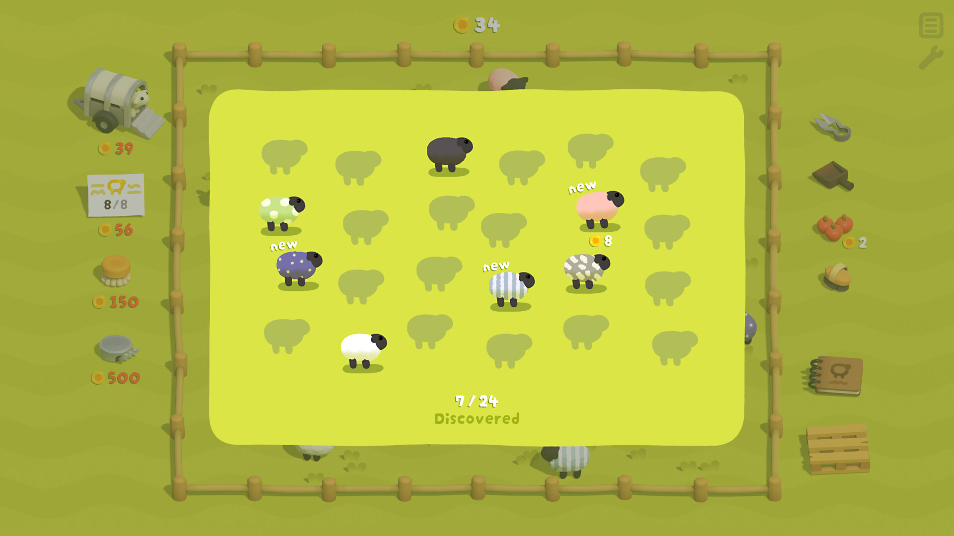 Not all sheep are the same! Their fleeces are random - discover each colour and pattern to complete your collection and find out which ones generate the most income.