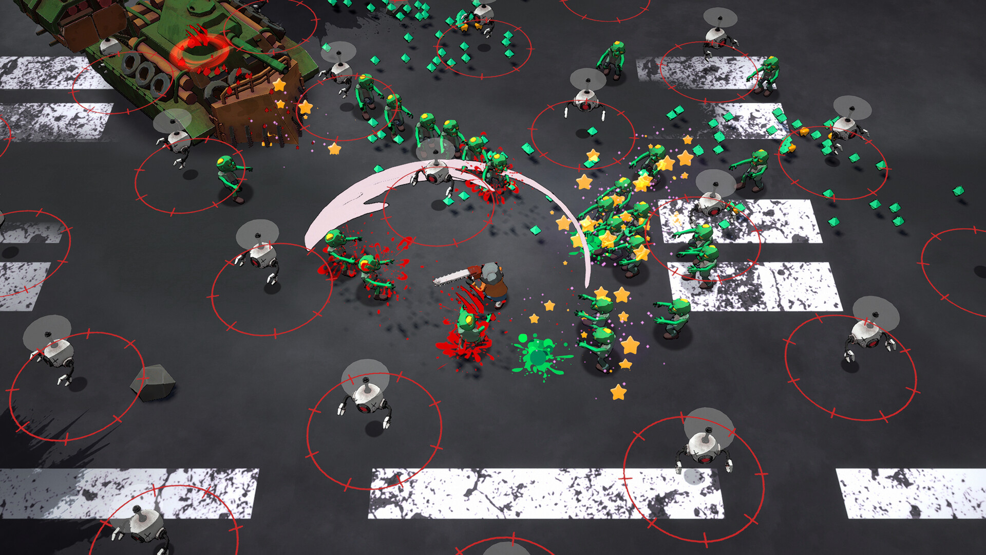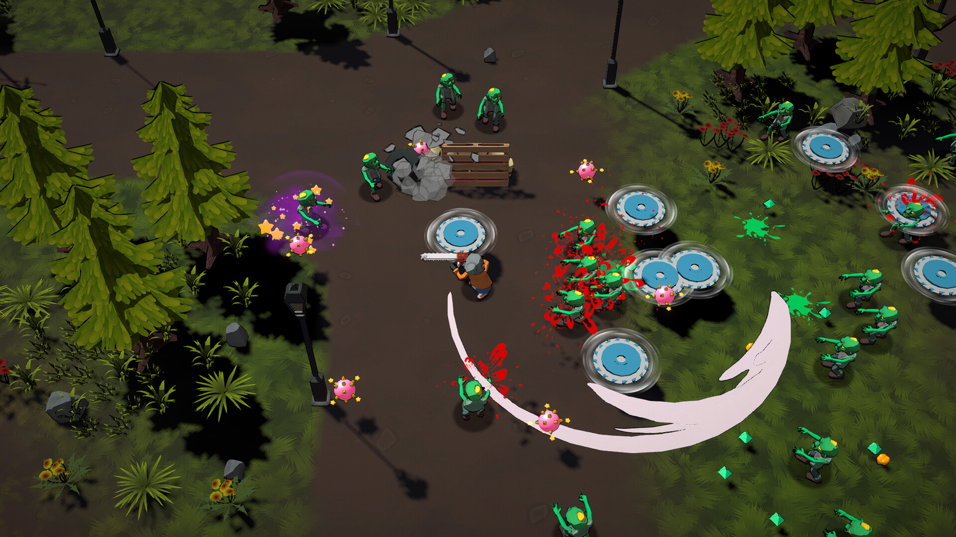 In a zombie apocalypse, a grandmother takes a chainsaw to find her grandson. Defeat slow, persistent zombies, collect gear, and strengthen with exercise. Advance through ever-stronger hordes, reclaiming youthful power in this survival action game.