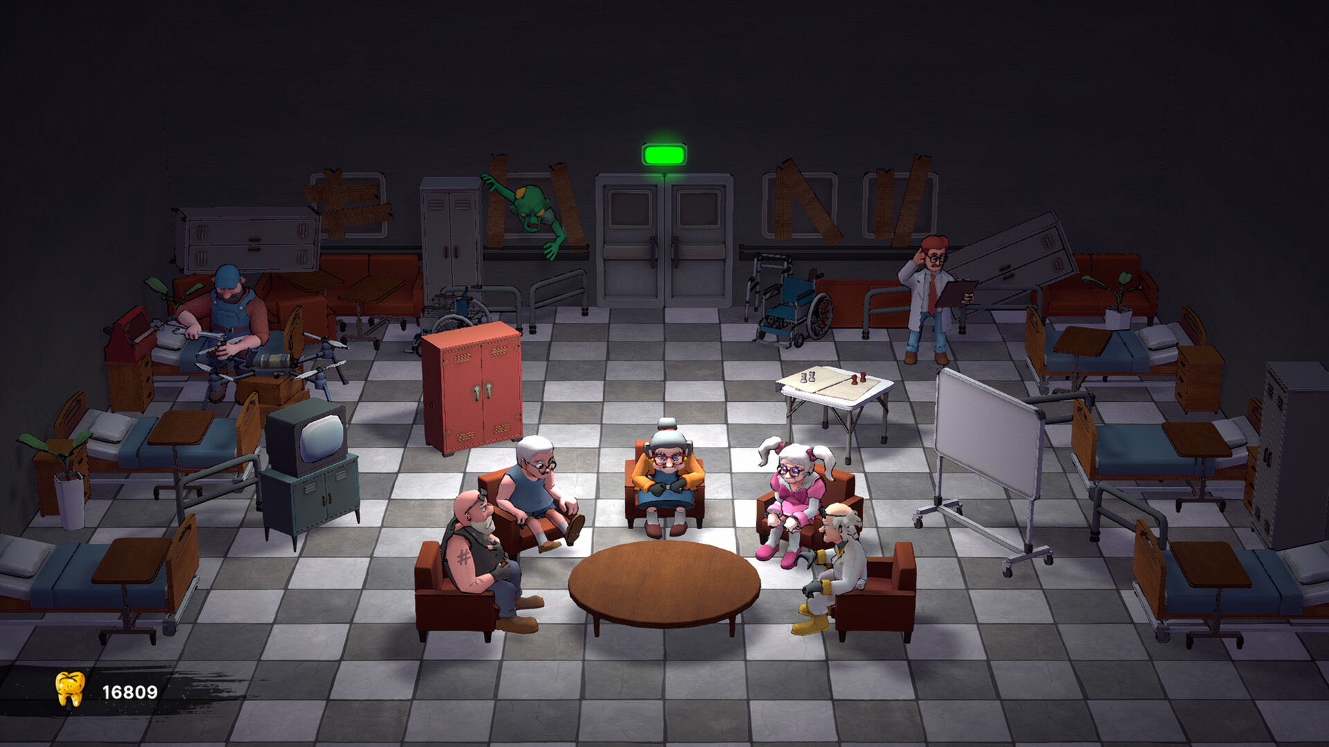 Survive with five elderly people in a zombie apocalypse world. They were spending the rest of their lives quietly in a nursing home, but they have a colorful past that no one knew about. They might have been a killer, a war veteran, a police officer, or even a magical girl or a mechanic for the Earth Defense Force. Hunt zombies skillfully in your own way. When a zombie shows its teeth, they say, "Bite Me, Sonny!"