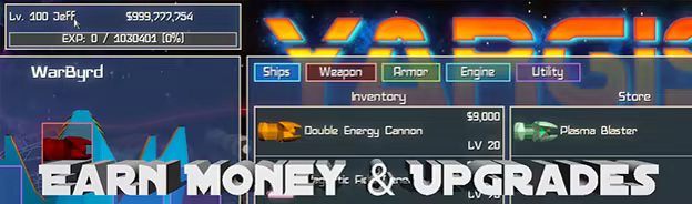 You can earn money and experience points in game by playing both single player and multiplayer. Level up your character to buy cool new ships and use the money you earn to get new weapons and items. Granular upgrades can be used to improve the parts on your ship.