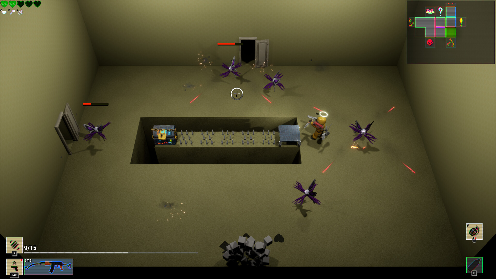 This is an exploration + puzzle + mildly horror roguelike top-down shooter game where you can customize weapons and escape the backrooms through thousands of rooms!