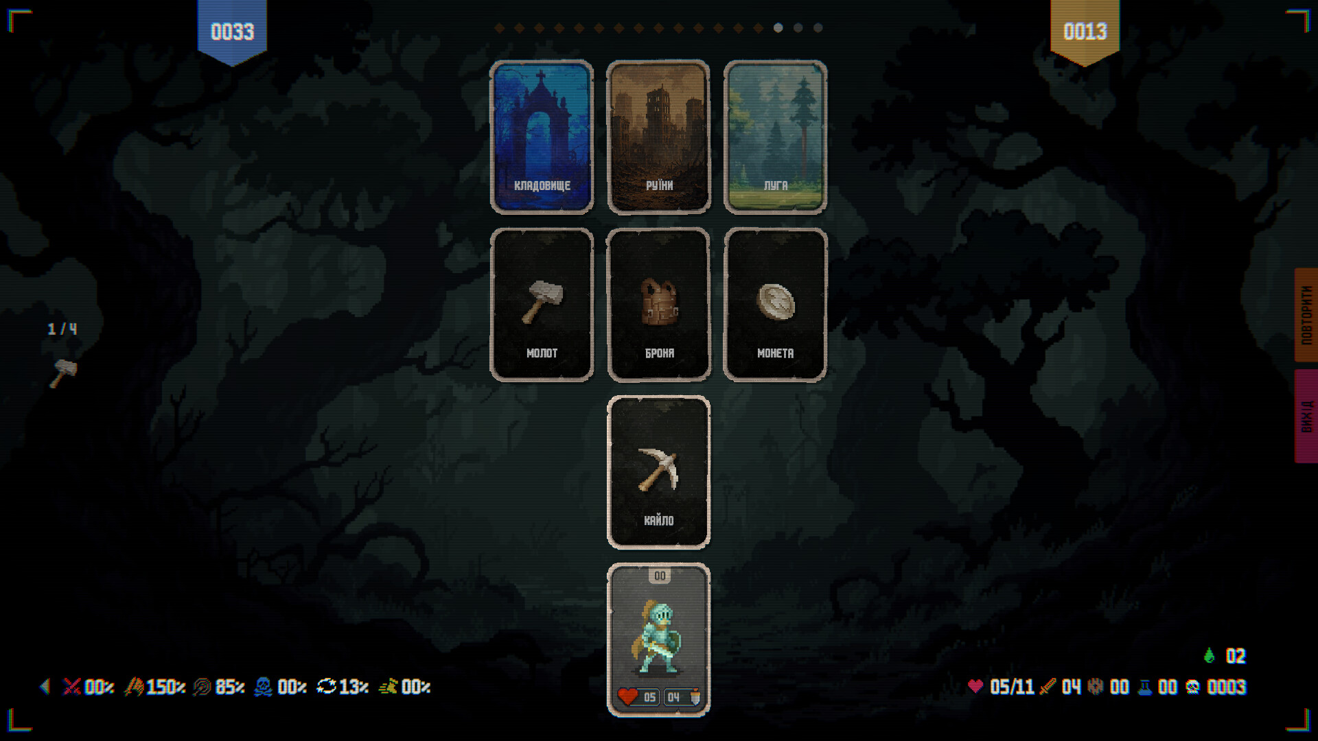Revive & Repeat — картковий dungeon crawler-роглайк, де ти комбінуєш модифікатори й артефакти, створюєш шалені білди, борешся з босами та змагаєшся з іншими гравцями у таблиці лідерів — кожна смерть робить тебе сильнішим.