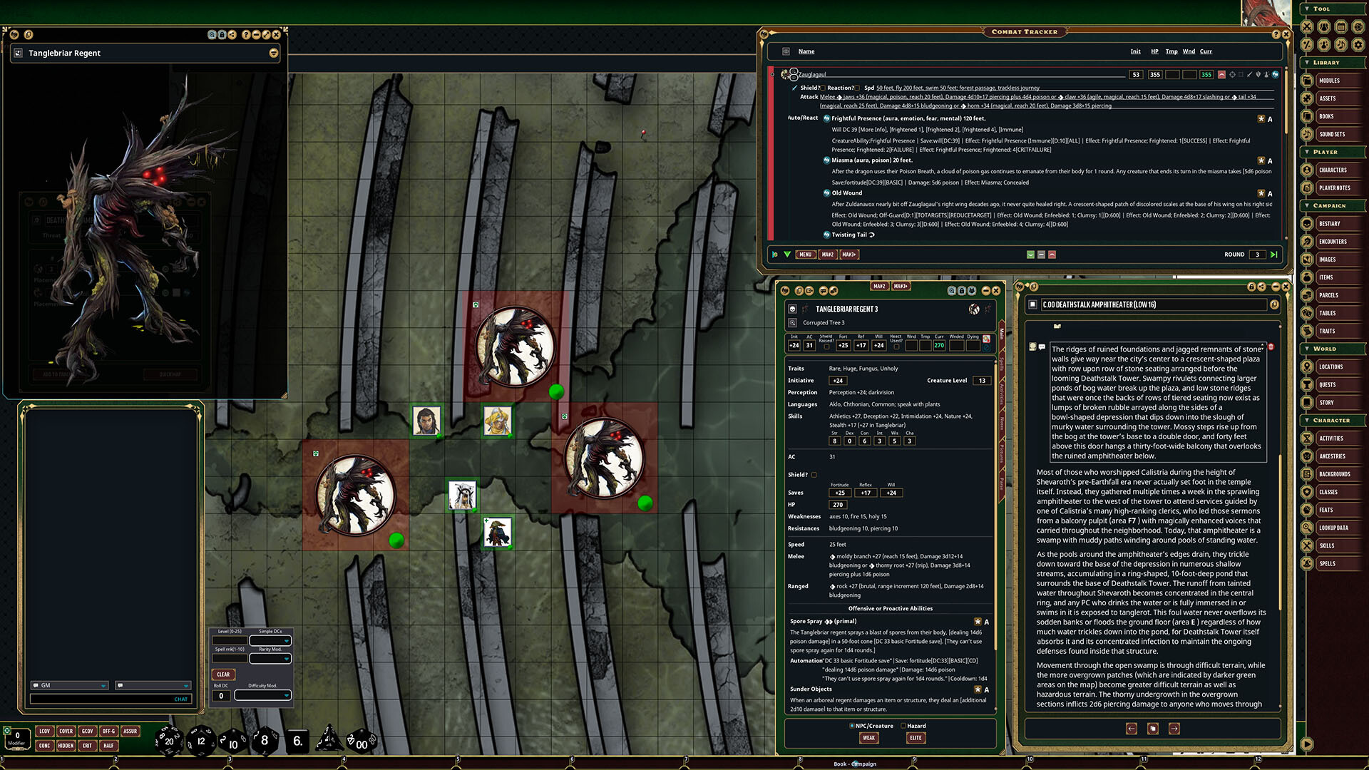 • Tokens for each encounter are all pre-placed in starting locations on the map. You can edit these on the fly.