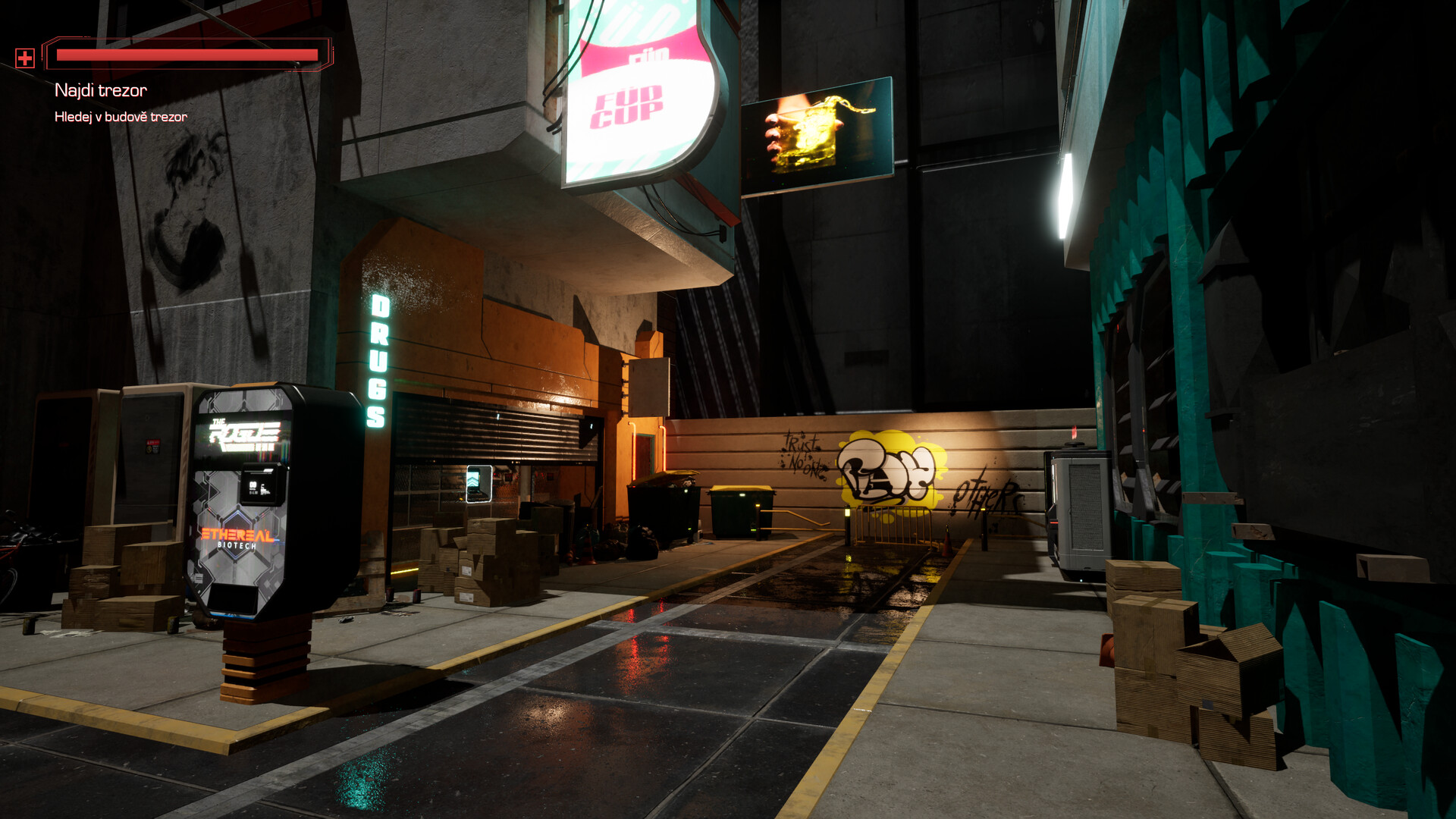 • 3D adventura z pohledu první osoby v kyberpunkovém prostředí.
