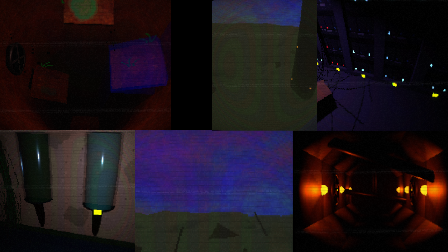 • Explore a procedural retro-styled industrial environment through a series of cameras