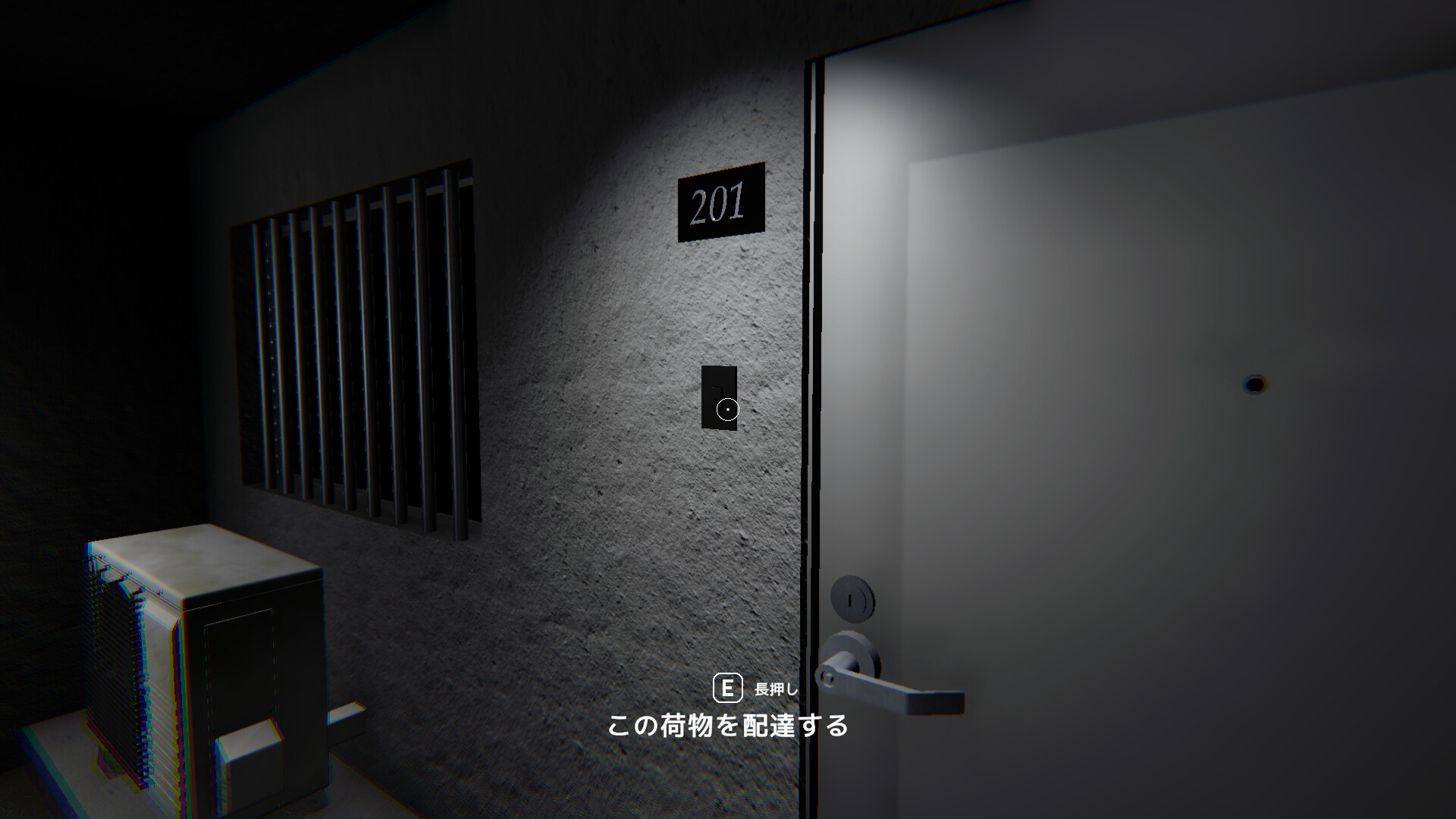 配達業務を繰り返す一人称視点の探索型ホラーゲームです。