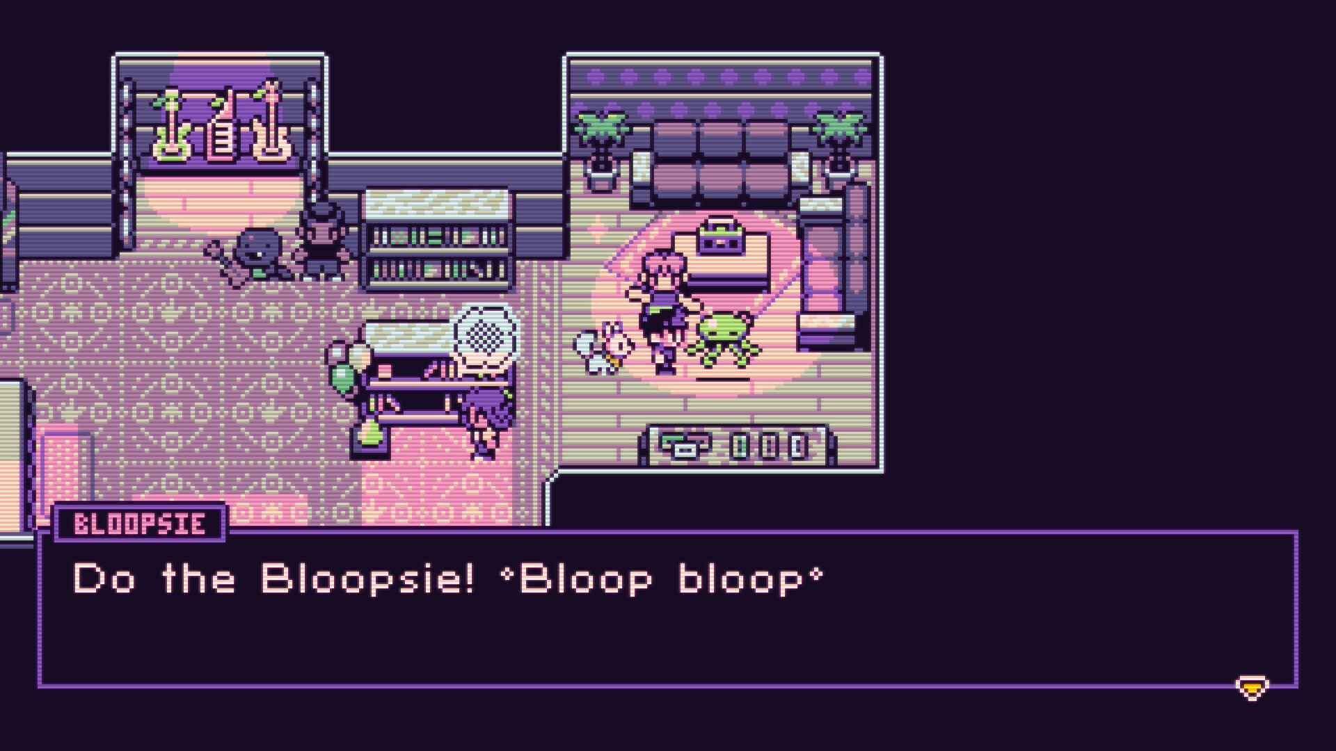 Experience the unique vibes (and colour palette) of PETAL RUNNER’S second district as you zoom through hyper-detailed pixel streets, meeting characters full of personality some may describe as “charming” or “wacky” or “wait, stop... scratch-’n-sniff stickers are not actually food!” (Your mileage may vary—you ARE riding a hand-built motorcycle, after all!)