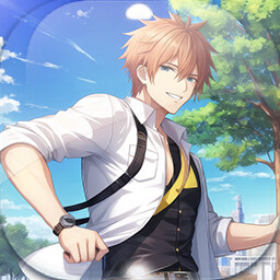 The background images and boys pictures are pre-rendered AI art