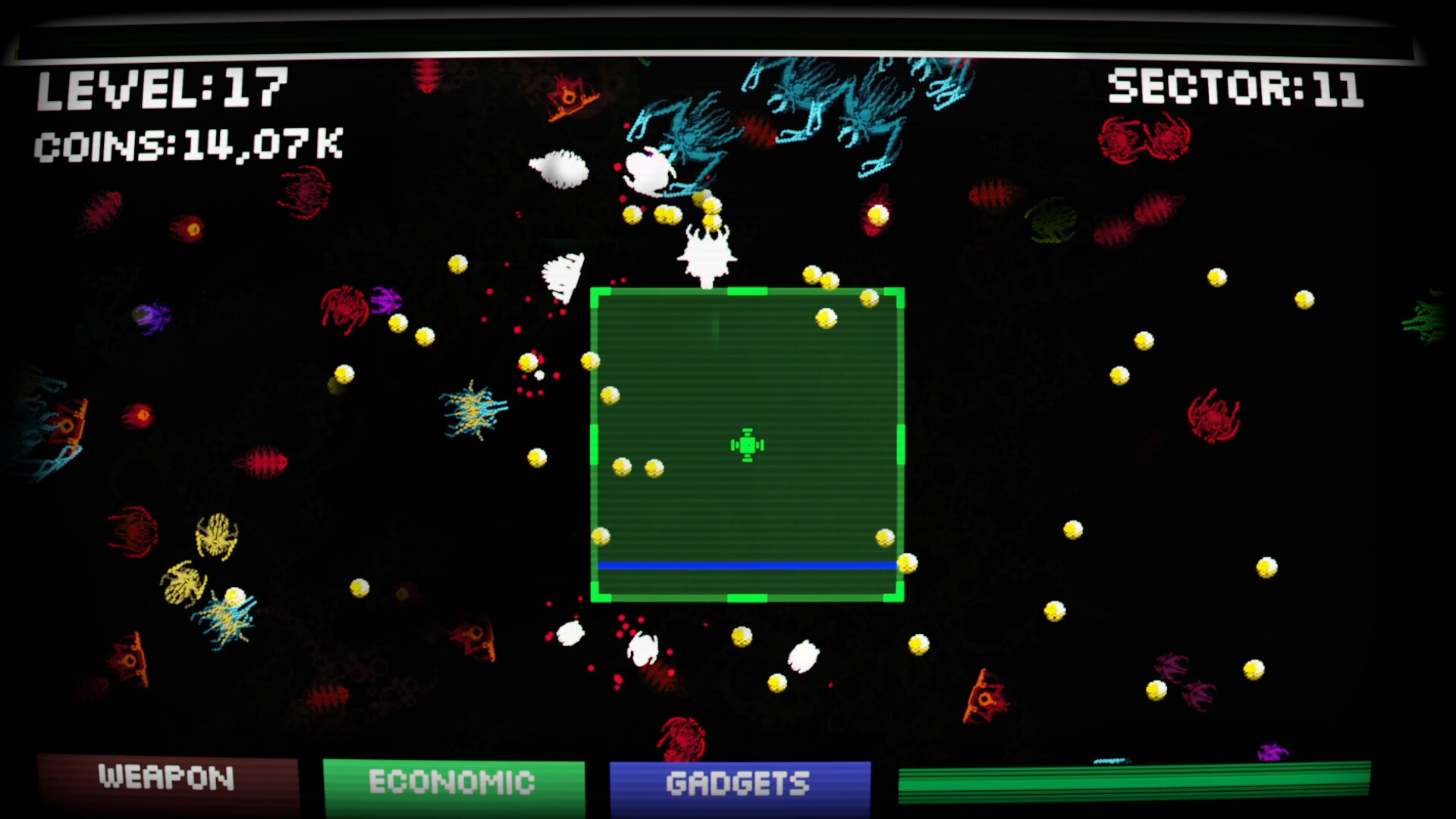 Destroy the mutants, get coins and buy improvements that will make you even more effective in combat: increase the damage dealt by each shot, slow down enemies when hit or reduce the reloading time.