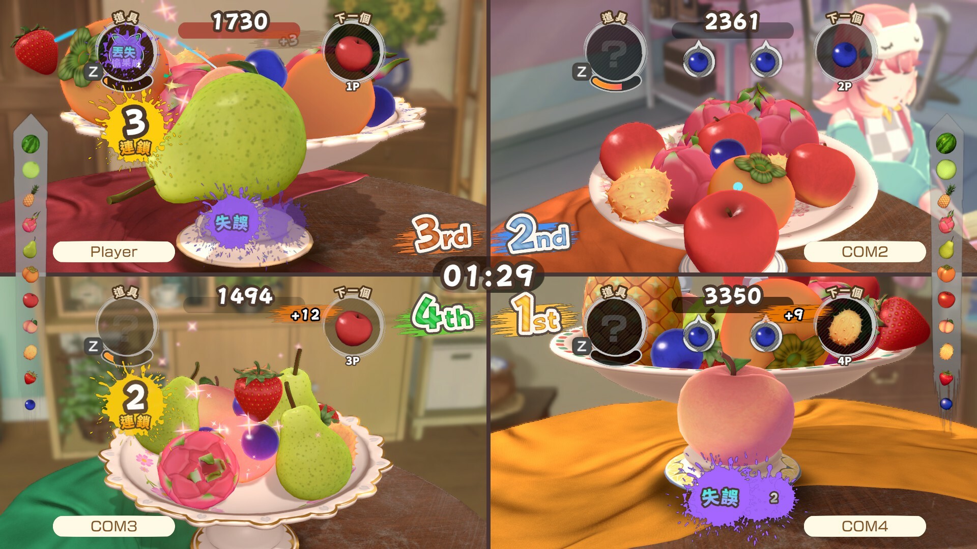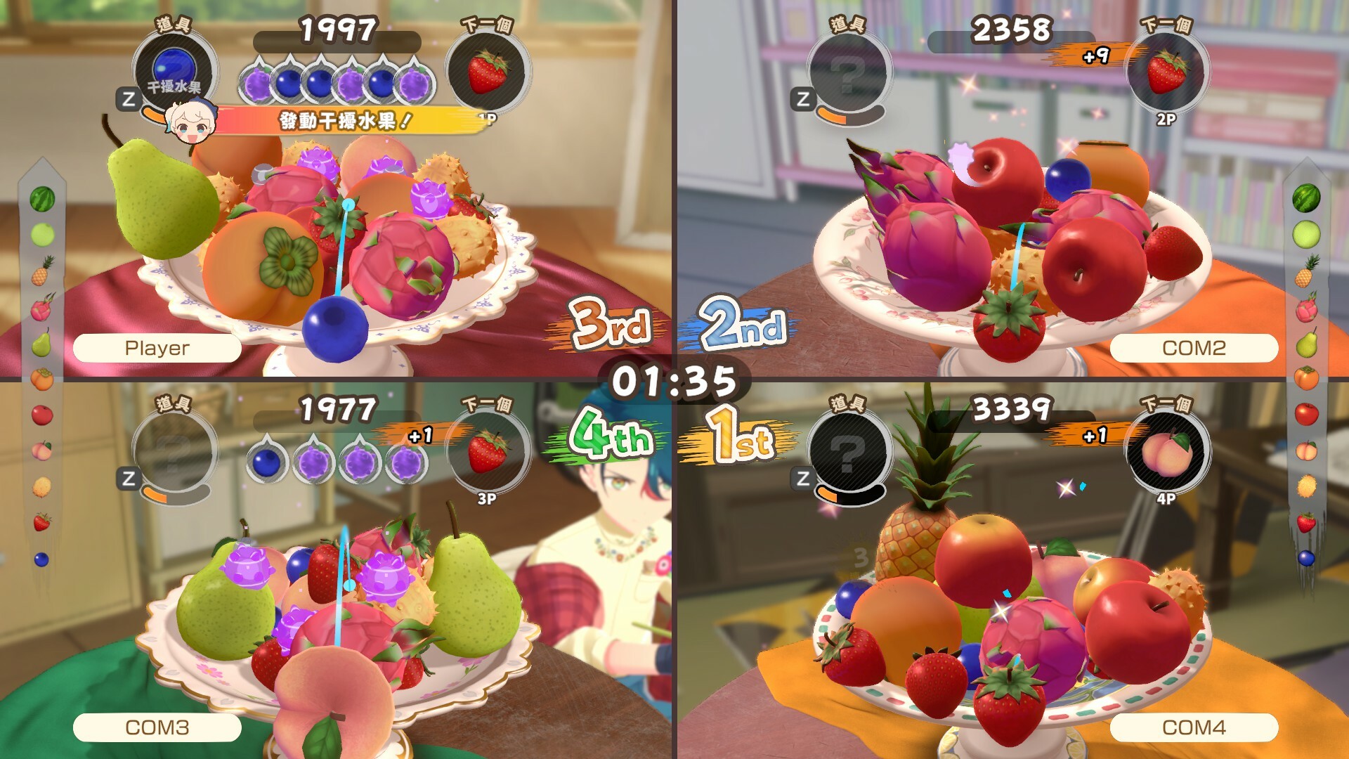 別讓水果掉出盤子,小心靈巧地合併水果吧!