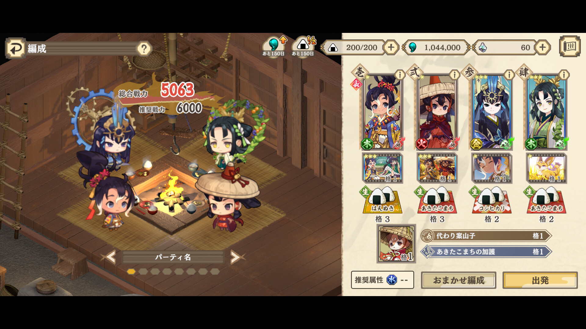 仲間を最大4人まで編成し、稲の精霊と一緒にクエストに挑戦!