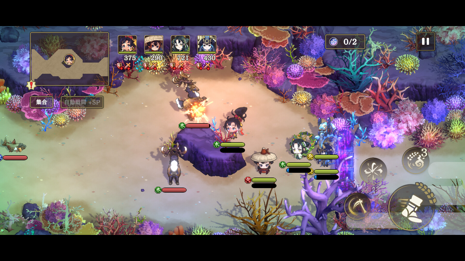 仲間を最大4人まで編成し、稲の精霊と一緒にクエストに挑戦!