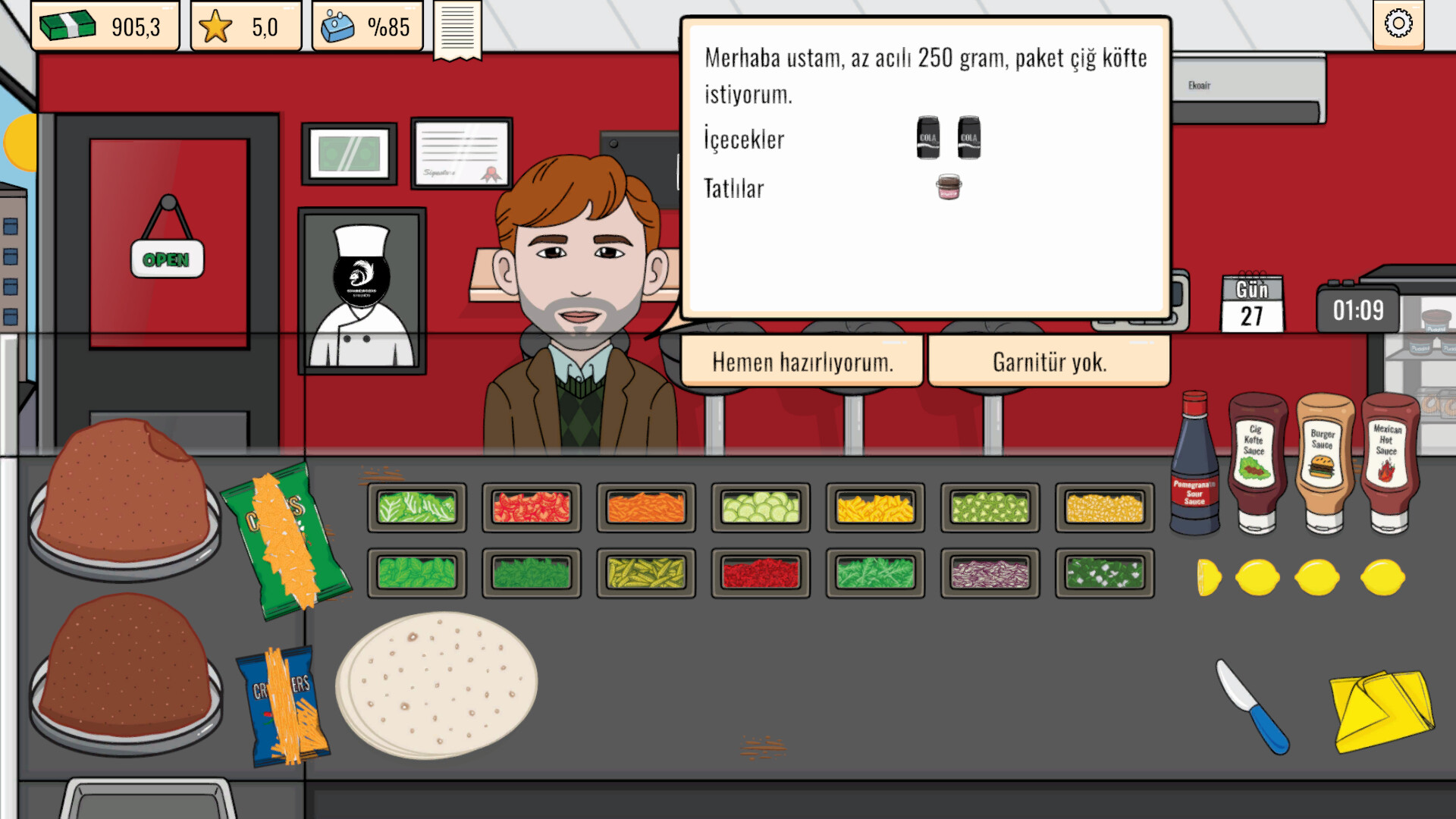 Türkiye’nin meşhur sokak lezzeti çiğköfteyi keşfet! Lavaşa sar, müşterilere servis yap, dükkanını geliştir, malzemeleri yönet ve eğlenceli bir birinci şahıs simülasyon deneyimi yaşa!