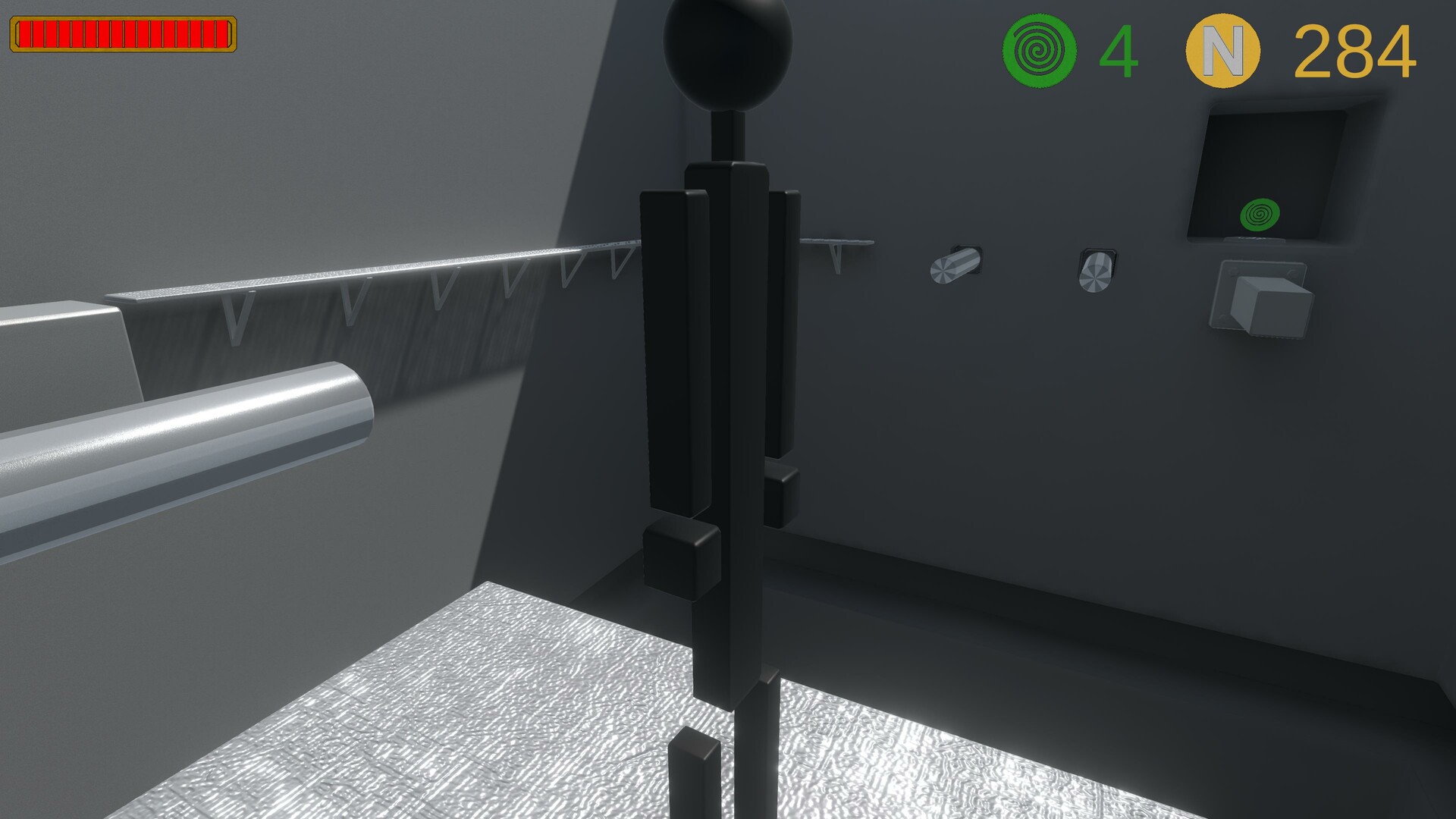 ABOUT THE GAMEPLAY: You will control an anthropomorphic character (no fixed name), this type can move at 3 speeds, can jump, and jump very high when on structures that grant him this ability. The character is capable of executing 2 offensive moves, a simple kick and a body turn with open arms, both moves also have other uses besides causing physical damage. The action button (check in the controls menu) is used for general interaction; such as using CONTEXT-SENSITIVE BUTTONS, using teleporters, elevators, advancing dialogues, etc... Due to the nature of the character, he is not an agile and flexible creature, so his movements are rigid and limited, but his physical constitution also grants him unique abilities.
