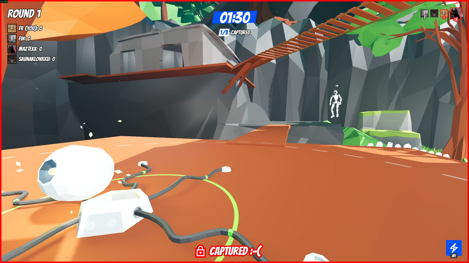 The round starts! Hiders must rush to break the jail device, then scatter around the level to hide.