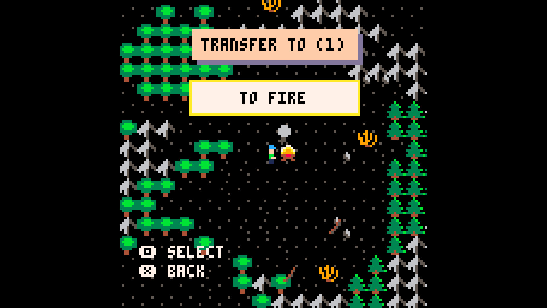 Notice too the blinking hunger bar with the drumstick icon. It is up to you to explore and find food.
