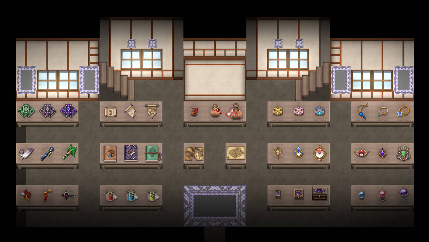 Stock all of the shops with the reagents and tools your magicians and alchemists could dream of with the KR Fantasy Market - Magic Tileset! Kokoro Reflections is back with a set of MV/MZ-sized tiles to add that extra layer of detail to your store maps that you’ve been dreaming of! A2, A4, and 1 B sheet offers warm wood and stone floors and walls to give your shops basic rooms, as well as counters, windows, and rugs to add a cozier vibe to the space. Keep your heroes from seeing the best items on sale by having those stored safely in the basement or on the second floor which can only be reached by using the stairs with the shopkeeper’s permission.