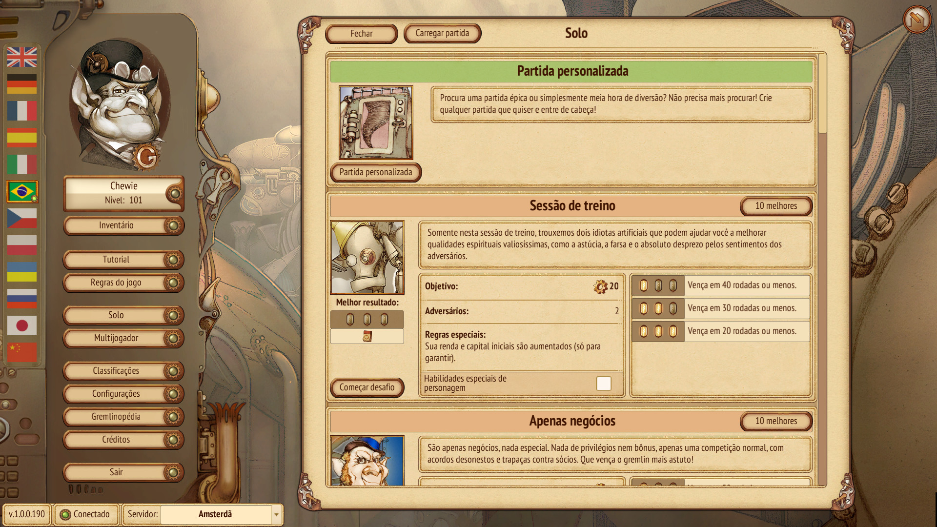 • Além disso, o jogo oferece 10 desafios de jogo solo, além da opção de criar partidas solo personalizadas com configurações diferentes e diversos jogadores controlados pela IA.