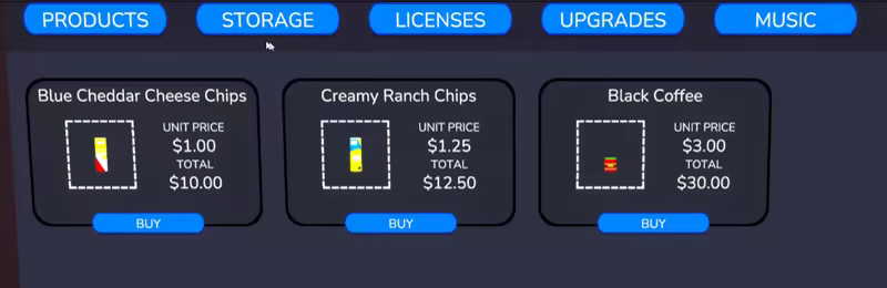 Расширяйте магазин, покупая лицензии и дополнительные складские площади!